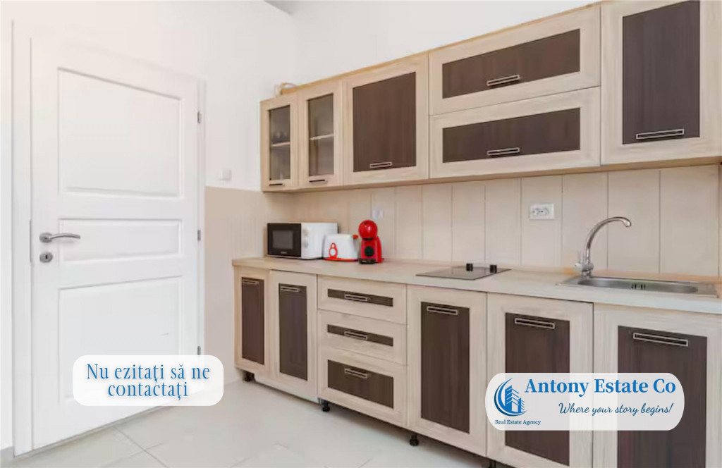 Va propunem spre inchiriere in exclusivitate un apartament cu 1 camera, Etajul 1/1, complet mobilat si utilat, situat Ultra-Central pe strada Vasile Alecsandri - Oradea. Imobilul se afla intr-o curte comuna, fiind situat la etajul 1 al cladirii, imobilul fiind dotat cu acoperis. Detine o suprafata totala de 48 mp construiti, din care suprafata utila este de 40 mp. La preluarea imobilului, se percepe valoarea cumulata a unei (1) chirii lunare, ca si garantie. Pretul chiriei este usor Negociabil pentru cei care aleg plata in avans pe o perioada de 1 an. Locuinta este compusa astfel: - 1 Camera de zi; - 1 Bucatarie; - 1 Mezanin pentru dormit; - 1 Baie cu, cabina de dus; - 1 Terasa. Proprietarul pune la dispozitie viitorului nou chirias urmatoarele utilitati: cuptor si plita, microunde, hota, frigider, masina de spalat rufe, TV si intregul mobilier ce se vede in poze. Icirc;n apropierea acestui imobil se gasesc: loc de joaca pentru copii, statii de autobuz si tramvai, Gradinite, Scoli, Restaurante, Hoteluri, acces facil spre centrul orasului. Confortul termic al apartamentului este realizat de catre centrala proprie, cu calorifere. Informatiile tehnice au caracter orientativ, acestea fiind preluate de la proprietar. Pentru mai multe detalii si vizionari, ne puteti contacta telefonic la numarul din anunt. Antony Estate CO - Where your story begins!