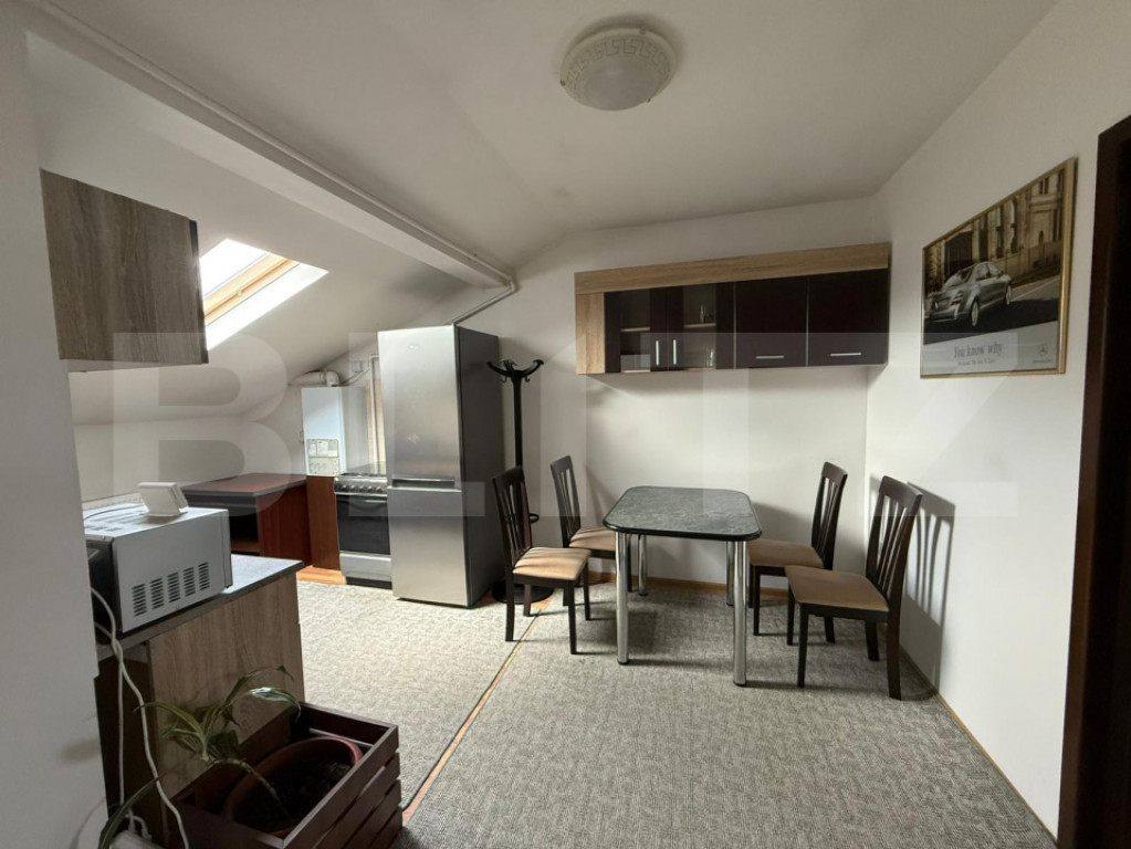 Dacă îți dorești un apartament confortabil, într-o zonă foarte bine poziționată din Cluj-Napoca, acest apartament din cartierul Bună Ziua poate fi alegerea ideală. Locuința are o suprafață de 55 mp și este situată la mansardă, oferind o atmosferă caldă și primitoare. Spațiul este bine organizat și luminos, fiind potrivit atât pentru o persoană, cât și pentru un cuplu care își dorește un loc liniștit pe care să îl numească „acasă”. Apartamentul este compus din 2 camere, baie și bucătărie cu spațiu deschis, creând o zonă de zi practică și aerisită, perfectă pentru relaxare sau pentru petrecerea timpului liber. Un mare avantaj al locuinței este locul de parcare în curte, iar accesul în curte este securizat cu barieră, oferind mai multă siguranță și confort. ???? Localizare excelentă: Apartamentul se află pe strada Bună Ziua nr. 82, chiar vis-a-vis de Lidl, având în apropiere magazine, restaurante, cafenele, mijloace de transport și acces rapid către alte zone ale orașului. ✨ Avantaje: zonă foarte căutată din Cluj-Napoca loc de parcare în curte privată acces securizat cu barieră magazine și facilități la câțiva pași spațiu ideal pentru locuit confortabil ???? Pentru mai multe informații sau pentru programarea unei vizionări, nu ezitați să mă contactați. Cod ofertă / ID BLITZ: P166141 Id intern: P166141
