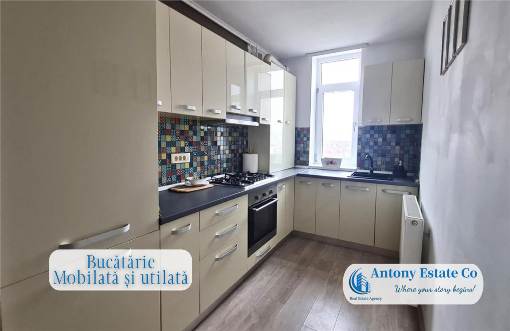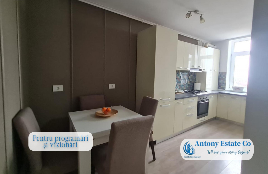 Va propunem spre inchiriere un apartament cu 2 camere, Open Space Etajul 6/9, mobilat si utilat, situat in blocul Prima Sova, Cartierul Nufarul - Oradea. Imobilul se afla intr-un bloc de apartamente cu 9 etaje, fiind situat la etajul 2 al acestuia, blocul fiind dotat cu lift. Detine o suprafata totala de 70 mp construiti, din care suprafata utila este de 55 mp. La preluarea imobilului, se percepe valoarea cumulata a unei (1) chirii lunare, ca si garantie. Imobilul dispune de un loc de parcare la parcarea subterana. Locuinta este compusa astfel: - 1 camera de zi; - 1 bucatarie open space; - 1 dormitor matrimonial; - 1 baie cu dus walk-in; - 1 balcon deschis; - 1 vestibul. Proprietarul pune la dispozitie viitorului nou chirias urmatoarele utilitati: cuptor si plita, microunde, hota, frigider, masina de spalat rufe, masina de spalat vase, uscator de rufe, 1 TV si intregul mobilier ce se vede in poze. Icirc;n apropierea acestui imobil se gasesc: loc de joaca pentru copii, statii de autobuz si tramvai, Gradinite, Scoli, Restaurante, Hoteluri, acces facil spre centrul orasului. Scara blocului este dotata cu interfon. Confortul termic al apartamentului este realizat de catre centrala proprie pe gaz, cu calorifere, astfel costurile cu intretinerea sunt mici. Imobilul dispune de un aparat aer conditionat. Informatiile tehnice au caracter orientativ, acestea fiind preluate de la proprietar. Pentru mai multe detalii si vizionari, ne puteti contacta telefonic la numarul din anunt. Antony Estate CO - Where your story begins!