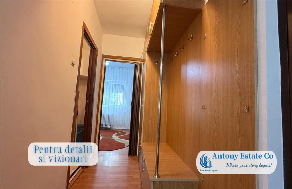 Va propunem spre inchiriere un apartament cu 2 camere, complet mobilat si utilat, situat in zona Rogerius - Oradea. Imobilul se afla intr-un bloc de apartamente cu 4 etaje, fiind situat la parterul acestuia. Detine o suprafata totala de 63 mp construiti, din care suprafata utila este de 53 mp. La preluarea imobilului, se percepe valoarea cumulata a unei (1) chirii lunare, ca si garantie. Pretul chiriei este usor Negociabil pentru cei care aleg plata in avans pe o perioada de 1 an. Locuinta este compusa astfel: - 1 Dormitor; - 1 Bucatarie; - 1 Baie cu dus; - 1 Vestibul. Proprietarul pune la dispozitie viitorului nou chirias urmatoarele utilitati: plita, cuptor, frigider, masina de spalat rufe, cuptor cu microunde, TV si intregul mobilier ce se vede in poze. Icirc;n apropierea acestui imobil se gasesc: loc de joaca pentru copii, statii de autobuz si tramvai, Gradinite, Scoli, Restaurante, Hoteluri, acces facil spre centura orasului. Scara blocului este dotata cu interfon. Confortul termic al apartamentului este realizat de la reteaua edilitara de termoficare, astfel costurile cu intretinerea sunt mici. Informatiile tehnice au caracter orientativ, acestea fiind preluate de la proprietar. Pentru mai multe detalii si vizionari, ne puteti contacta telefonic la numarul din anunt. Antony Estate CO - Where your story begins!