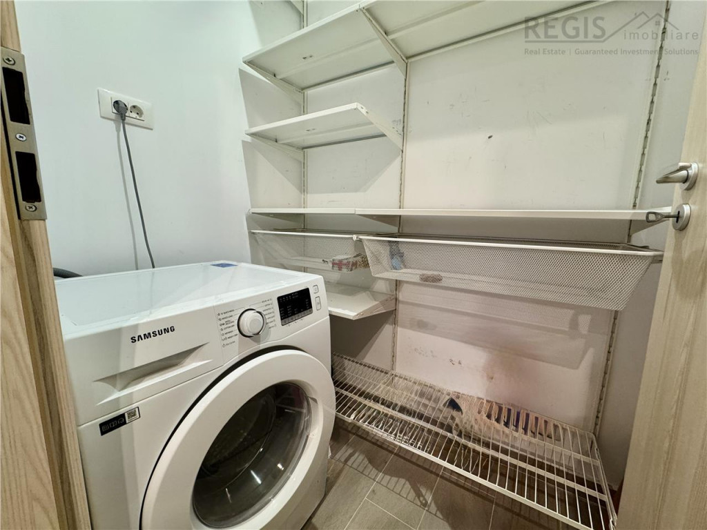 ID intern: 6483 REGIS Imobiliare va propune spre inchiriere un apartament cu 2 camere, open space, situat in complexul rezidential Urban Plaza. Detalii proprietate: Etajul 6 din 8 Compartimentare: Living opern space cu bucataria, dormitor, baie, debara si balcon; Locuinta are o suprafata utila de 57 mp si un balcon generos; Mobilat si utilat cu electrocasnice moderne: frigider, plita, cuptor, hota, masina de spalat vase, masina de spalat rufe cu uscator; Baie dotata cu cada; Spatii de depozitare generoase si bine organizate; Confortul este completat de centrala proprie si incalzire in pardoseala; Orientare: Sud-Vest Imobilul beneficiaza de lift, interfon video si loc de parcare privat; Nu se accepta animale de companie; Comisionul agentiei este 50% TVA din valoarea chiriei pe o singura luna, doar la semnarea contractului. Pentru mai multe detalii si vizionari: 0774 994 172