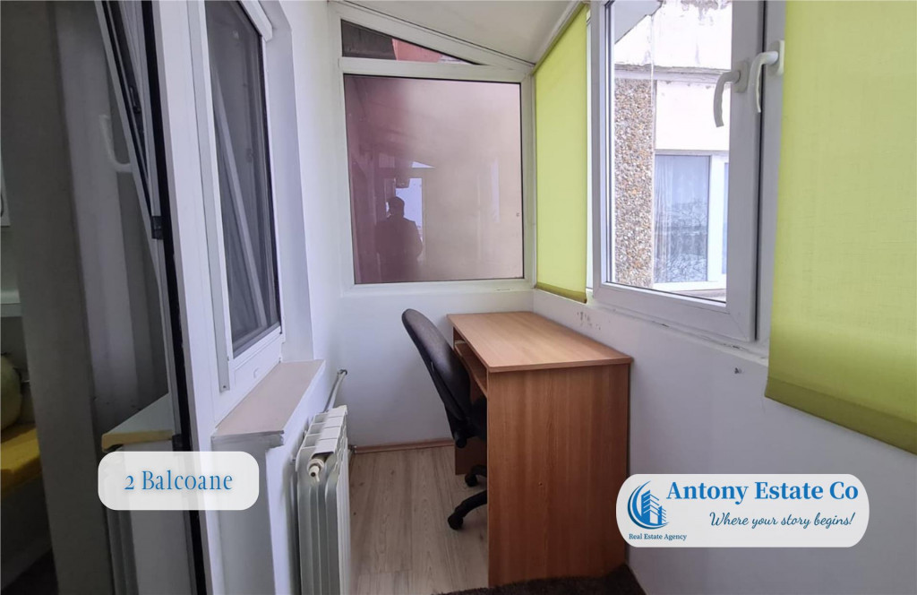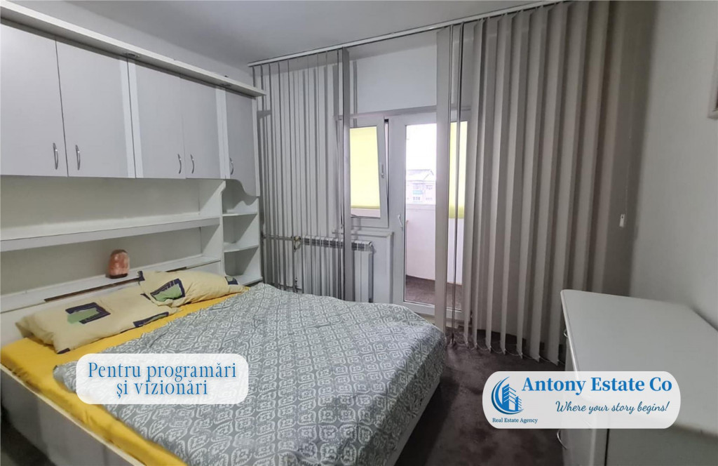 Va propunem spre inchiriere un apartament cu 3 camere, Etajul 4/4, mobilat si utilat, situat pe strada Aluminei, Cartier Rogerius - Oradea. Imobilul se afla intr-un bloc de apartamente cu 4 etaje, fiind situat la etajul 4 al acestuia, blocul fiind dotat cu acoperis. Detine o suprafata totala de 75 mp construiti, din care suprafata utila este de 60 mp. La preluarea imobilului, se percepe valoarea cumulata a unei (1) chirii lunare, ca si garantie. Nu se accepta animale de companie. Locuinta este compusa astfel: - 1 camera de zi; - 1 bucatarie open space; - 1 dormitor matrimonial; - 1 dormitor tineret/office; - 1 baie cu cada; - 2 balcoane; - 1 vestibul. Proprietarul pune la dispozitie viitorului nou chirias urmatoarele utilitati: cuptor si plita, microunde, frigider, masina de spalat rufe, 1 TV si intregul mobilier ce se vede in poze. Icirc;n apropierea acestui imobil se gasesc: loc de joaca pentru copii, statii de autobuz si tramvai, Gradinite, Scoli, Restaurante, Hoteluri, acces facil spre centrul orasului. Scara blocului este dotata cu interfon. Confortul termic al apartamentului este realizat de la reteaua edilitara de termoficare, cu calorifere, astfel costurile cu intretinerea sunt mici. Apartamentul dispune de 1 aparat aer conditionat. Informatiile tehnice au caracter orientativ, acestea fiind preluate de la proprietar. Pentru mai multe detalii si vizionari, ne puteti contacta telefonic la numarul din anunt. Antony Estate CO - Where your story begins!