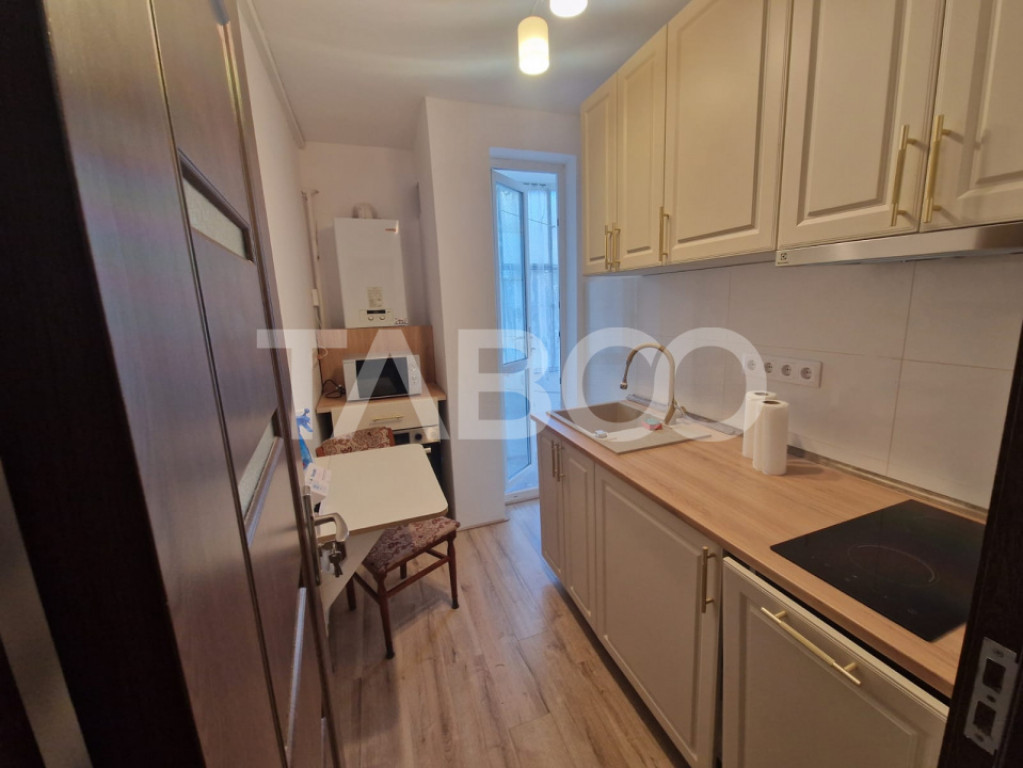 Apartament 2 camere de inchiriat, semidecomandat, 36 mp, zona Mihai Viteazul, Sibiu. Avantaje majore ale acestui apartament: •Acces rapid la transport; •Acces la magazin si centre comerciale. TABOO Imobiliare propune un apartament de inchiriat cu 2 camere, semidecomandat, situat in localitatea Sibiu, zona Mihai Viteazul, aflat la etajul 1 intr-un imobil tip bloc cu regim de inaltime pe Parter + 4 Etaje; anul constructiei 1975, anul renovarii 2025, structura caramida. Suprafata utila de 36 mp + 4 mp balcon. Apartamentul este structurat astfel: • Hol; • Bucatarie; • Baie; • Living cu balcon; • Dormitor; Finisajele interioare sunt clasice: • Usa intrare: metal; • Usi interioare: celulare; • Tamplarie ferestre: pvc, termopan; • Pereti: vopsea lavabila, faianta; • Podele: parchet, gresie. Utilitati si dotari: • Bucatarie: mobilata, utilata; • Mobilat: complet; • Utilitati: curent electric, apa, canalizare, gaz, catv, acces internet, fibra optica; • Izolatii: exterior, bloc izolat termic; • Contorizare: apometre, contor gaz, contor curent electric, contorizare separata; • Caracteristici bloc: interfon, acoperis. Apartamentul se inchiriaza mobilat si utilat cu: plita electrica, cuptor, hota, masina de spalat rufe, masina de spalat vase, frigider cu congelator, cuptor cu microunde. Incalzirea se realizeaza prin centrala proprie si calorifere. Pentru a se inchiria acest apartament se achita proprietarului chiria + o luna garantie. Pret: 330€ Cod ofertă / ID: P25468 Sună-ne acum la 0369.822.820 și află detalii despre această proprietate de inchiriat din Sibiu, dar și despre alte proprietăți potrivite pentru tine. Informatii speciale: 1. Descarcă aplicația pe mobilul tau "TABOO Imobiliare" din Apple Store, Google Play sau Huawei AppGallery pentru a afla instantaneu noile proprietăți care intră pe piață. 2. Dacă ai o proprietate pe care vrei să o vinzi sau să o închiriezi, suntem aici pentru tine! Contactează-ne pentru o evaluare gratuită fără obligații și vei descoperi avantajele de a lucra cu o echipă dedicată și experimentată. 3. Dacă vrei sa incepi o cariera de agent imobiliar, suna la 0369.822.820 si programeaza o intalnire pentru a afla toate beneficiile si avantajele. Intră pe TABOO.ro și descoperă cele mai recente oferte, actualizate zilnic. Anunt actualizat in 5 decembrie 2025. Id intern: P25468
