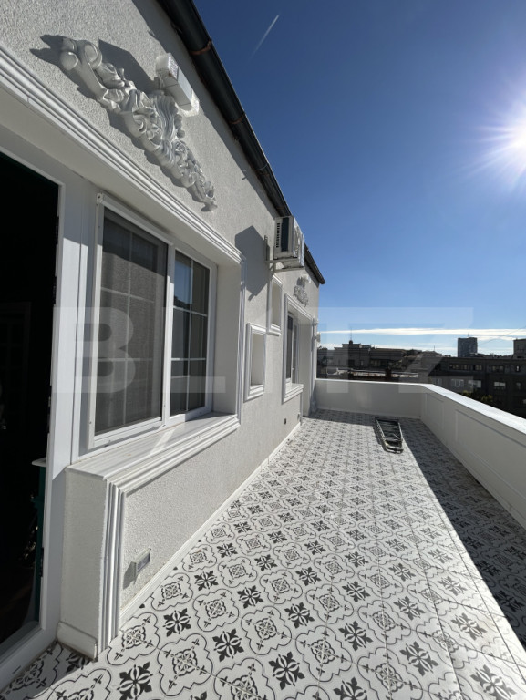 Blitz vă propune spre închiriere un apartament cu 2 camere, situat într-una dintre cele mai apreciate și liniștite zone ale Capitalei – zona Dacia. Proprietatea se află la etajul 5 din 5 al unui imobil construit în 1946, dotat cu lift funcțional, și impresionează prin eleganța sa aparte și atmosfera sofisticată. Locuința redefinește stilul clasic printr-un design rafinat, cu accent baroc, finisaje atent alese și detalii care conferă un aer exclusivist. Livingul și dormitorul sunt punctele centrale ale apartamentului, evidențiindu-se prin: -pereți în tonuri închise, candelabre cu cristale și decorațiuni clasice; -mobilier elegant, de inspirație regală, ce oferă o ambianță caldă și rafinată. Apartamentul are o suprafață utilă de 51 mp și dispune de o terasă generoasă de 25 mp, perfectă pentru momente de relaxare sau seri petrecute în aer liber. Printre facilitățile moderne se numără: -încălzire prin pardoseală; -mobilă și electrocasnice complet noi și neutilizate (TV, mașină de spălat rufe și vase); -ușă de baie cu geamuri tip Privacy, un detaliu elegant și practic; -sistem de monitorizare video la intrarea în apartament. Imobilul este încadrat la risc seismic II, iar liniștea zonei și calitatea spațiului oferă un echilibru perfect între farmecul clasic și confortul contemporan. ???? Pentru mai multe detalii sau pentru a programa o vizionare, contactați consultantul Blitz Imobiliare! Cod ofertă / ID BLITZ: P156762 Id intern: P156762