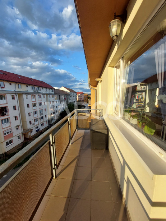 TABOO Imobiliare propune un apartament de inchiriat cu 2 camere, decomandat, situat in localitatea Sibiu, zona Terezian, aflat la etajul 4 intr -un imobil tip bloc cu regim de inaltime pe Parter + 4 Etaje + Mansarda; anul constructiei 2009, structura caramida. Suprafata utila de 49 mp + balcon de 6 mp.