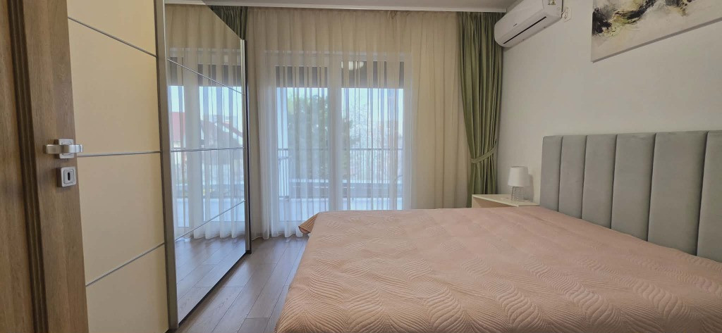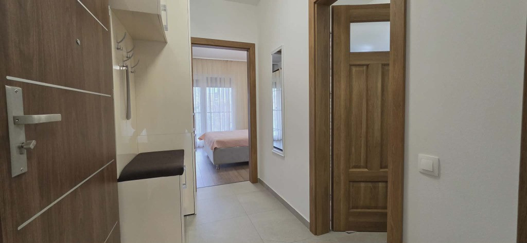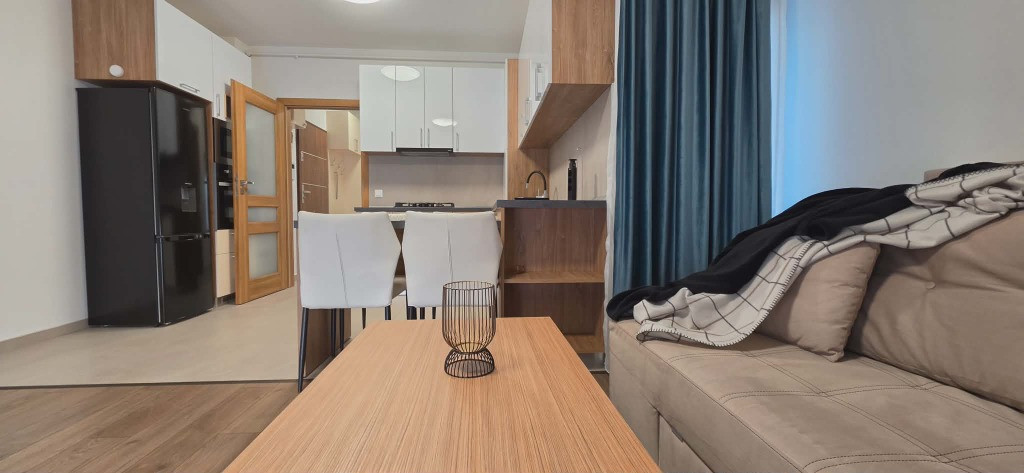 Apartament de inchiriat, str. Mestesugarilor/cart.Iosia Cora Proiect Imobiliare va propune spre inchiriere un apartament premium cu doua camere, situat intr-un bloc de exceptie, recent finalizat, mai exact pe str. Mestesugarilor. Locatie excelenta, zona linistita ce ofera confortul si siguranta la cele mai inalte standarde. Blocul ofera o intimitate aparte fiind o constructie pe 3 nivele, in total 9 apartamente adica 3 apartamente pe fiecare nivel, dispune de asemenea de o curte interioara cu locuri de parcare acoperite, intrare in curte cu porti automatizate, ascensor de ultima generatie de 4 persoane. Finisaje sunt de cea mai inalta calitate, incontestabile, executate intr-un stil contemporan definit prin rafinament si eleganta. Constructie de exceptie ce se remarca prin lucrari executate la cel mai inalt nivel calitativ, materialele de asemenea. Apartamentul propus spre inchiriere este situat la etajul 1 al blocului si este dispus pe o suprafata utila totala de 50 mp, suprafata construita 70 mp. Compartimentare optima, bine gandita, spatiul de noapte este clar delimitat de cel de zi, compozitia apartamentului fiind urmatoarea: hol de intrare cu dressing de hol, dormitor matrimonial, bucatarie cu camera de zi si locul pentru luat masa in spatiu deschis, cu acces la balcon, baie dotata cu dus walk - in. Apartamentul se ofera spre inchiriere complet mobiliat si utilat, beneficiind de: videointerfon, instalatii electrice, incalzirea in pardoseala, centrala proprie pe gaz, aer conditionat, tamplarie termopan cu 3 foi si 5 canate, balcon placat cu gresie, balustrada din sticla securizata. De mentionat faptul ca incalzirea in pardoseala faciliteaza reducerea costurilor la intretinere! Mobilier de inalta calitate, electrocasnice de asemenea, alese cu mult bun gust, completand armonios designul apartamentului. Amplasat in apropierea centrului comercial Prima Shops, centrul orasului, magazine plus multe alte facilitati si nu in ultimul rand amenajarea armonioasa si calitativa a acestuia il plaseaza ca fiind alegerea ideala pentru viitorii chiriasi! Dispune de loc de parcare acoperit! Pret de inchiriere: 460 euro/luna + garantie. Pentru mai multe informatii va rog sa ma contactati la nr. de tel.: 0745 782494 – Junc Ovidiu.