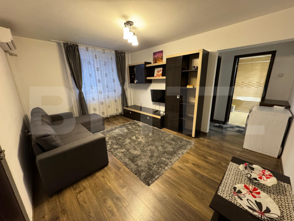 Blitz vă propune spre inchiriere un apartament cu 2 camere, situat la etajul 1, cu o suprafață utilă de 42mp, amplasat într-o zonă ultracentrală. .Locuința dispune de centrală termică proprie, aparat de aer condiționat, TV, masina de spalat rufe, uscator de rufe, aspirator, frigider, aragaz cu cuptor si hota. Datorita pozitionarii sale ultracentrale, in apropiere regasim magazine, restaurante, cafenele, licee, sali de sport, parcuri si acces facil catre mijloace de transport. Pentru mai multe detalii sau pentru programarea unei vizionări, nu ezitați să ne contactați! Cod ofertă / ID BLITZ: P161822 Id intern: P161822