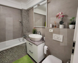 Dispune de incalzire in pardoseala generata de o centrala proprie pe gaz, aer conditionat ,confortul termic fiind mentinut de izolatia buna a peretilor exteriori si a ferestrelor din termopan cheltuielile fiind mici raportate la suprafata utila. Apartamentul se vinde mobilat si utilat la pretul de 172000 euro putin negociabil.