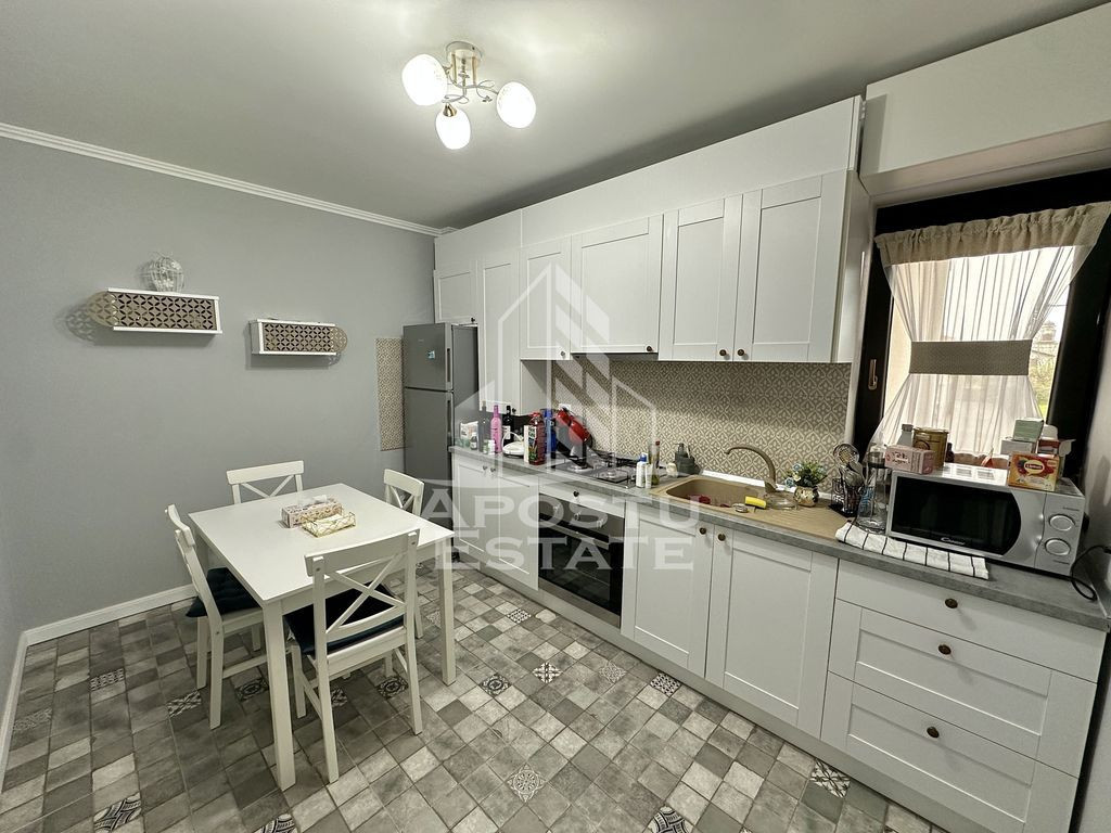 APOSTU ESTATE va propune spre vanzare un apartament cu 2 camere situat in Giroc. Drumul de acces spre imobil este asfaltat. In apropiere sunt magazine si supermarket-uri precum Lidl, Profi, Mega Image, Penny, Scoala, gradinita și parc la o distanta de 2 minute, acces facil la mijloace de transport in comun. Apartamentul se vinde complet mobilat si utilat, cu exceptia mobilierului din living. Imobilul dispune de o suprafata de 56mp utili si este situat la etajul 1, intr-un complex rezidential. Compartimentare: - hol acces. - bucatarie inchisa. - dormitor. - baie cu geam si cada. - terasa de 8mp Detalii tehnice: - constructie realizata in anul 2022 din caramida Porotherm de 30 cm. - exterior izolat cu polistiren de 10 cm eps 80. - pereti despartitori complet din caramida (fara rigips) tencuiti mecanizat finisati cu glet si vopsea lavabila. - geamuri termopan cu 3 sticle pentru izolare fonica si termica superioara, foarte mari si luminoase. - centrala proprie marca ariston pe gaz, sistem eficient de incalzire in pardoseala. - aparataje modulare Gewis. - usa acces securizata, usi interioare Porta Doors.. - parchet in living, dormitoare si gresie in bucatarie, hol, baie. - electrocasnice noi, in stare perfecta de functionare. (frigider, masina de spalat rufe, aragaz, cuptor, hota) - mobilier de inalta calitate, realizat pe comanda, atat în dormitoare, pe hol, cat si in bucatarie. - 1 loc de parcare și curte interioara. Utilitati complete: curent, apa de la retea, canalizare, gaz. Pentru mai multe detalii nu ezitati sa ne contactati! Acceptam orice fel de credit bancar. Oferim consultanta si solutii financiare prin colaboratorii nostri pentru a obtine cel mai avantajos credit Ipotecar sau Noua Casa. Va asteptam cu drag la o vizionare chiar astazi! CP2504262