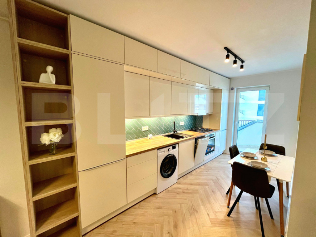 Blitz vă oferă spre vânzare un apartament modern cu 3 camere, situat pe strada Eroilor, într-o zonă foarte căutată datorită accesului excelent către magazine, stații de transport în comun și spații verzi. Apartamentul este poziționat la etajul 6 al unui imobil cu 8 etaje, într-o clădire îngrijită și bine construită. Acesta dispune de o suprafață utilă de 55 mp, la care se adaugă un balcon generos de 10 mp, ideal pentru relaxare. Compartimentarea semidecomandată este eficient realizată și se prezintă astfel: living modern cu bucătărie open-space, 2 dormitoare luminoase, baie complet echipată și hol cu spații de depozitare. Finisajele și mobilierul sunt de categorie superioară, apartamentul fiind dotat cu bucătărie din MDF vopsit, electrocasnice Beko integrate, materiale premium și detalii atent alese peste media zonei. Locuința este foarte luminoasă și oferă o atmosferă primitoare, fiind potrivită atât pentru locuit, cât și ca investiție cu randament excelent. Se vinde complet mobilat și utilat, pregătit pentru mutare imediată. Opțional se poate achiziționa un loc de parcare subteran la prețul de 8.000 euro + TVA Nu ezitați să ne contactați pentru mai multe detalii sau pentru stabilirea unei vizionări! Cod ofertă / ID BLITZ: P160130 Id intern: P160130