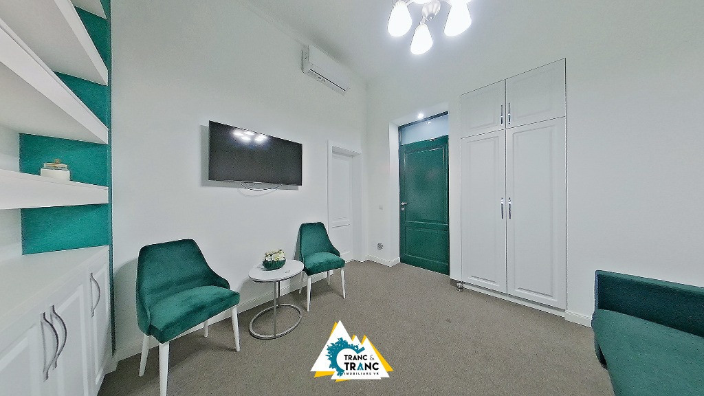 Apartament de lux cu 3 camere și salon închiriat – Vedere Bulevardul Revoluției, Ultracentral, Arad O oportunitate rară în inima Aradului: un apartament spectaculos și o afacere funcțională, perfect îmbinate într-o proprietate unică, situată într-o clădire istorică elegantă de pe Bulevardul Revoluției, vis-a-vis de Biserica Roșie și lângă Corso (fostul Segafredo). Proprietatea se află la etajul 1 al unei clădiri, într-o zonă exclusivistă și extrem de căutată, atât pentru locuit, cât și pentru investiții pe termen lung. Apartamentul principal are o suprafață utilă de 92,89 mp și impresionează prin înălțimea generoasă de 3,5 metri, compartimentarea eficientă și spațiile largi, ideale pentru un stil de viață rafinat. Renovarea completă, realizată în 2023, a adus în acest spațiu un design personalizat și modern, cu materiale premium, mobilier de lux, uși din lemn masiv executate la comandă și o paletă cromatică elegantă în nuanțe de alb și verde smarald. Geamurile 4 Season oferă o vedere spectaculoasă către Bulevardul Revoluției, permițând luminii naturale să pătrundă în fiecare colț al locuinței pe tot parcursul zilei. Încălzirea în pardoseală, centrala termică pe gaz, aerul condiționat, izolația interioară, finisajele impecabile și jocurile de lumini ambientale completează această atmosferă luxoasă. Un alt mare avantaj este locul de parcare privat în curtea interioară, accesibil din bulevard – un beneficiu extrem de rar în această zonă ultracentrală. Pe lângă spațiul rezidențial, proprietatea include un salon de înfrumusețare complet funcțional, afacere la cheie, cu toate cele trei camere închiriate deja către profesioniști – o manichiuristă, un maseur și un terapeut. Salonul are o suprafață utilă de 47 mp și este compartimentat eficient, având hol, baie și un design coerent cu restul apartamentului. Această zonă comercială generează în prezent un randament de 10%, fiind o investiție profitabilă din prima zi. În plus, proprietatea dispune și de o cameră de 10 mp utili la demisolul înalt, ideală pentru extindere, depozitare sau un spațiu adițional de lucru. Amplasarea ultracentrală, aproape de toate punctele de interes – Piața Mică, centrul comercial Ziridava, școli, parcuri, mijloace de transport, cafenele și restaurante – face din această proprietate alegerea ideală atât pentru cei care doresc o locuință spectaculoasă, cât și pentru investitori care caută o proprietate versatilă, cu potențial de creștere. Dacă îți dorești să trăiești la cele mai înalte standarde, într-un apartament elegant, amplasat într-una dintre cele mai dorite zone din Arad, și totodată să obții venituri dintr-o afacere deja funcțională, nu rata această oportunitate. Contactează-ne acum pentru detalii și programează o vizionare. Proprietăți ca aceasta apar rar pe piață.