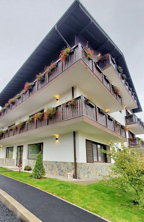 Alege-ti apartamentul perfect, ca parte integranta dintr-o constructie noua, formata din apartamente de vacanta, la 4 minute distanta de partiile de ski, din Poiana Brasov. Acest imobil detine o arhitectura aparte, specifica zonelor montane de ski, din Europa, fiind conceputa in armonie perfecta cu natura spectaculoasa si oferind o perspectiva aparte, catre munti si padure. Apartamentul propus beneficiaza de 2 camere, compartimentarea sa fiind una bine gandita, din punct de vedere practic. Acesta este dispus pe: -bucatarie de tip open-space; -zona de living, care beneficiaza de o priveliste deosebita; -dormitor; - baia, aceasta beneficiind de aerisire naturala; -balcon, care este ideal pentru relaxare si pentru a admira peisajul deosebit, asupra padurii si a muntilor. Un avantaj al acestor apartamente este dat de amortizarea intr-un timp relativ scurt, a investitiei si, totodata, de proximitatea fata de partiile de ski si de cele trei trasee noi de mountain bike si trekking. Imobilul este conceput ca si unitate de vacanta si, astfel, daca nu opteaza pentru exploatarea directa, viitorul proprietar poate beneficia de serviciul nostru, externalizat, care implica inchirierea spatiului achizitionat, in regim hotelier, fara a necesita implicarea directa in acest proces, care devine, astfel, profitabil si, mai ales, relaxant. Apartamentele din acest imobil beneficiaza de o pozitie optima, privelistea nefiind obturata. DOTARI: -Sistemul Smart Control, pentru temperatura ambientala | robinet general apa | alarma senzor miscare; -Incalzire in pardoseala; -Centrala termica electrica, pe inductie; -Tamplarie PVC, cu geam termopan, tripan; -Izolatie exterioara cu vata bazaltica, de 15 cm; -Placare lambriu lemn, partiala, pe exterior, pentru apartamentele de la mansarda; -Apartamentul se preda la cheie, cu toate finisajele si utilitatile incluse.