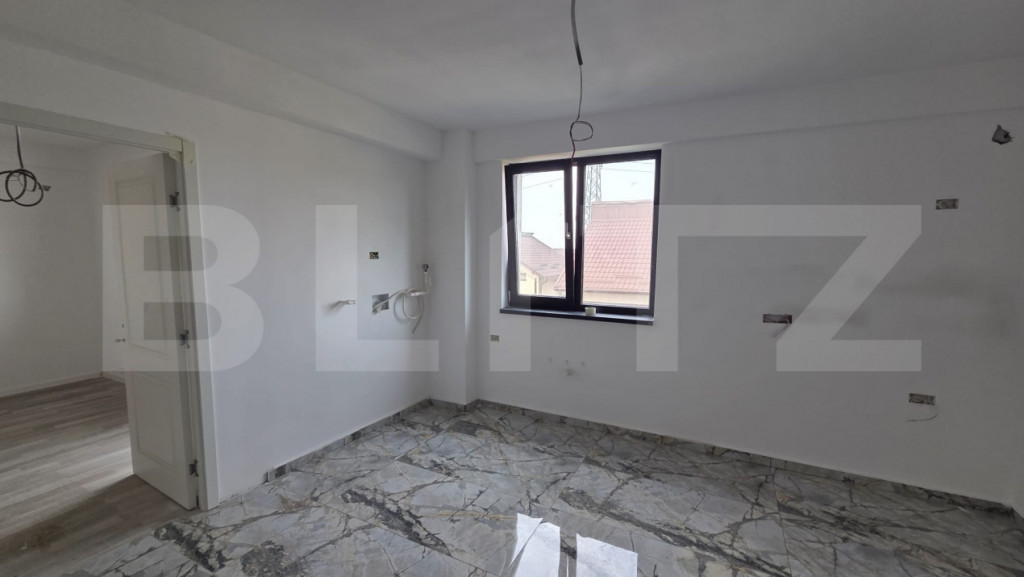 Blitz vă propune spre vânzare un apartament cu 2 camere decomandat, situat într-o zonă liniștită, ideală pentru cei care își doresc să locuiască aproape de oraș, dar departe de agitația urbană. Proprietatea se află în comuna Albești, la numai 3 kilometri de Craiova, într-un bloc nou aflat în curs de finalizare, cu termen de predare în luna septembrie 2025. Apartamentul este poziționat la etajul 1, un etaj ideal atât pentru familii, cât și pentru persoane care caută un acces facil, fără a renunța la intimitate. Cu o suprafață utilă de 57 de metri pătrați, locuința oferă un spațiu bine compartimentat și aerisit. Cele două camere sunt luminoase și spațioase, oferind un confort optim pentru viața de zi cu zi. Bucătăria este de tip open space, integrată armonios cu zona de living, creând un spațiu modern, primitor și funcțional Apartamentul se predă la cheie, ceea ce înseamnă că viitorul proprietar nu va mai trebui să investească suplimentar în finisaje. Este echipat cu centrală termică proprie pe curent, un avantaj important pentru gestionarea eficientă a consumului și a costurilor. Geamurile sunt de tip tripan, asigurând o bună izolație termică și fonică, contribuind astfel la confortul termic pe tot parcursul anului. Un alt atu al acestei proprietăți este amplasarea sa. În imediata apropiere se află un supermarket, ceea ce facilitează accesul rapid la produse de bază și cumpărături zilnice. Zona este în plină dezvoltare și oferă un echilibru perfect între proximitatea față de oraș și liniștea unei comunități mai retrase. Acest apartament este o alegere excelentă atât pentru locuit, cât și pentru investiție. Pentru mai multe informații sau pentru a programa o vizionare, nu ezitați să ne contactați. Cod ofertă / ID BLITZ: P149134 Id intern: P149134