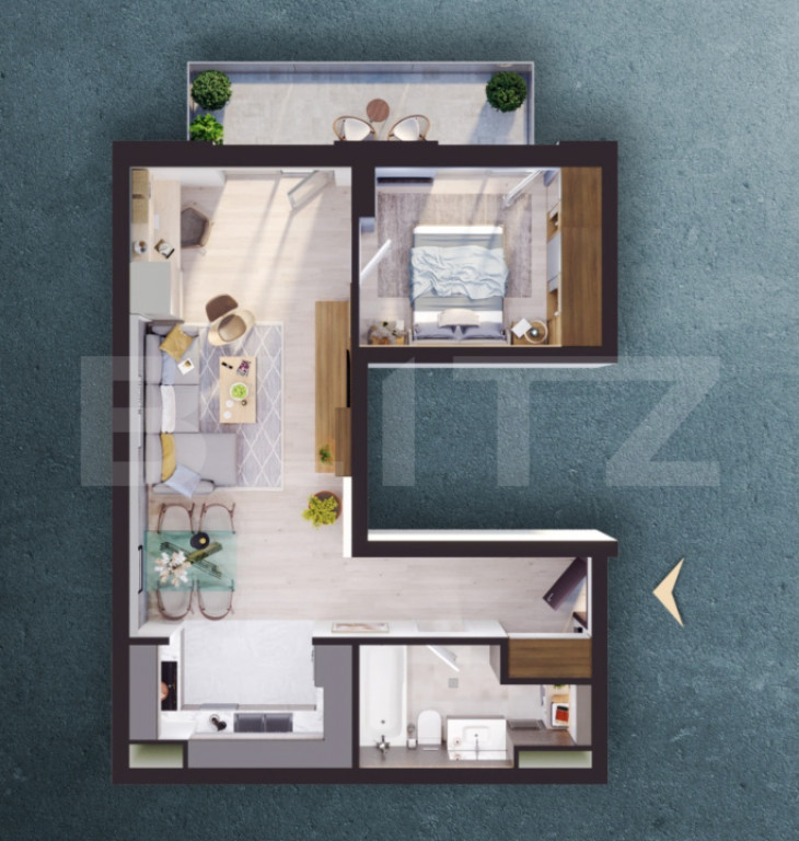 Blitz va propune spre vânzare un apartament cu 2 camere situat la etajul 1 în ansamblul rezidențial Elite City. - Apartamentul face parte din a doua faza a proiectului compartimentat astfel: dormitor, living cu bucatarie, baie și o terasa de 10 mp. La cerere se poate mobila, apartamentul dupa bunul plac al clientului, fotografiile cu mobilierul sunt randari.- Elite CIty este un proiect de regenerare urbană ce folosește cele mai noi tehnologii pentru a construi imobile Smart Ready și care respectă certificarea nZeb, adică apartamente cu un consum energetic aproape de zero! Energia necesară va fi asigurată prin panourile fotovoltaice instalate pe clădiri. - Ansamblul va beneficia în următorii ani de cresa, 3500 mp parc de joacă pentru copii, club de fitness și piscină, 18800 mp spații verzi - La parter vor fi spatii comerciale, stația de autobuz fiind în fata blocului -! - Opțional se poate achiziționa și loc de parcare subteran la prețul de 17000 euro/ Va așteptăm la vizionari! Cod ofertă / ID BLITZ: P148697 Id intern: P148697