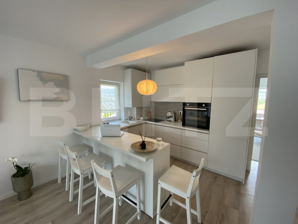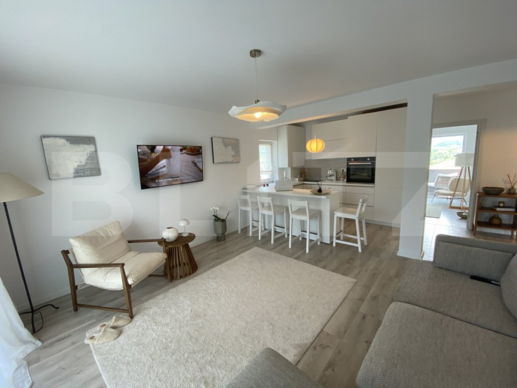 Blitz îți propune spre vânzare un apartament modern cu 3 camere, decomandat,l. ???? Locație ideală: la doar 3 km de centru.???? Detalii apartament: Suprafață utilă 60 mp + garaj în suprafață de 40 mp și gradina frumos amenajată in suprafat de 100 mp, Compartimentare decomandată: living open-space cu bucătărie, doua dormitore, baie, hol și două balcoane cu priveliște deosebită. Complet mobilat și utilat cu electrocasnice moderne, centrală proprie, 1 televizor, dressing, masina de spalat. Parcare in fata garajului???? Disponibil imediat! Apartamentul este gata să te primească. Te așteptăm la vizionare pentru a simți pe loc confortul și siguranța pe care le oferă această locuință complet echipată! Cod ofertă / ID BLITZ: P146772 Id intern: P146772