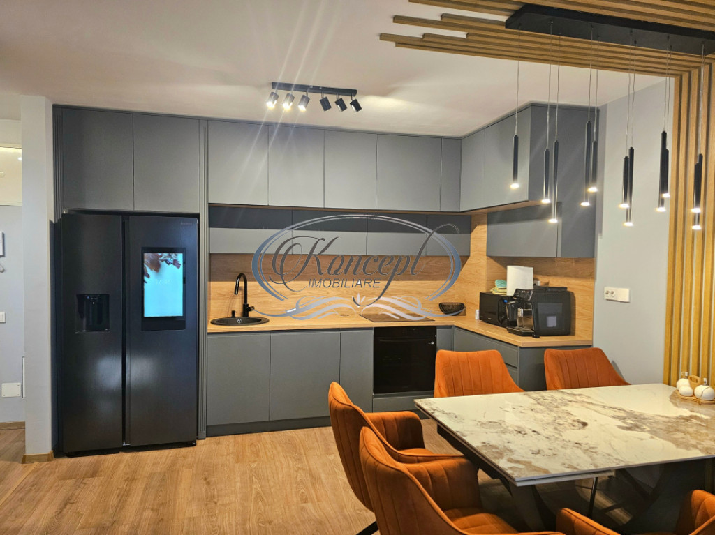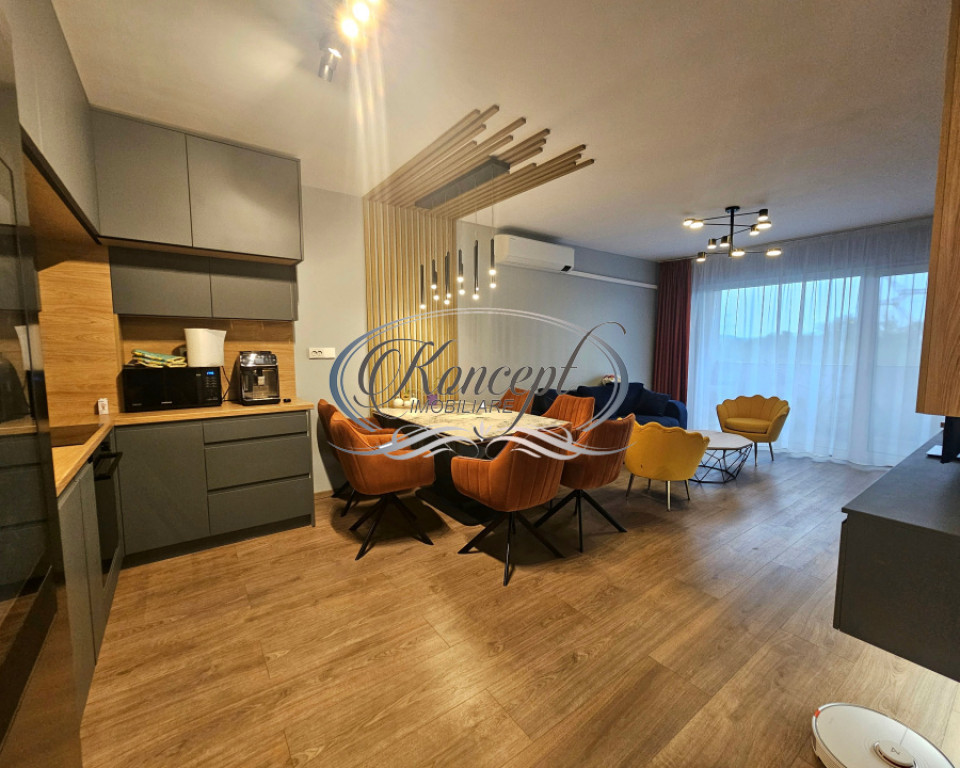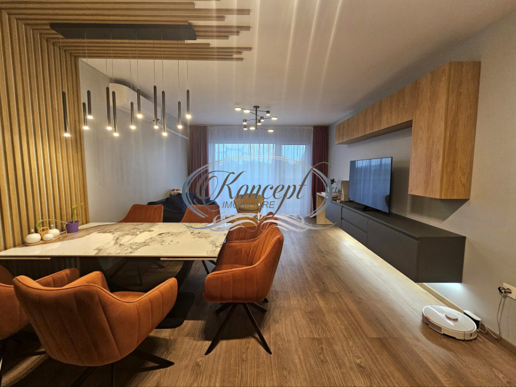 Koncept Imobiliare ofera spre vanzare un apartament modern, situat in cartierul Sopor, pe strada Soporului, in ansamblul rezidential Mon Jardin. Zona este recunoscuta pentru spatiile verzi generoase, infrastructura moderna si acces facil catre principalele puncte de interes ale orasului. Ansamblul Mon Jardin se remarca prin standarde ridicate de calitate si comunitate selecta, asigurand confort si siguranta. Proprietatea este amplasata la etajul 1, beneficiind de acces facil si priveliste placuta. Apartamentul dispune de o suprafata utila de 74 mp, compartimentata eficient in 3 camere, bucatarie, hol si 2 bai, completate de un balcon spatios de 10 mp. Optional se poate achizitiona si un loc de parcare subteran la pretul de 15.000 euro. Finisajele sunt de exceptie, iar locuinta se vinde complet mobilata si utilata cu aparatura smart de ultima generatie. Incalzirea se face prin pardoseala pe toata suprafata apartamentului, cu 4 zone controlate individual prin termostate inteligente. Apartamentul functioneaza ca un veritabil smart home, dotat cu electrocasnice performante si interconectate: frigider Samsung Family Hub, cuptor Samsung Bespoke controlabil prin Wi-Fi, plita cu inductie si hota Electrolux cu functii inteligente, masina de spalat cu uscator Samsung, masina de spalat vase Whirlpool, robot aspirare Roborock, aparate de aer conditionat si televizoare cu functii smart, precum si alarma de incendiu conectata la telefon. Locuinta este intr-o stare impecabila, aproape noua, fara urme de uzura. Aceasta proprietate este recomandata atat pentru o familie care cauta confort si tehnologie, cat si pentru o locuinta de protocol. Actele au fost verificate si validate de agentie, iar apartamentul se vinde la cheie. Pentru informatii complete, programarea unei vizionari sau pentru a afla oferta noastra completa va stam la dispozitie telefonic, prin e-mail sau la sediul agentiei noastre, pe str. Aviator Badescu, nr. 19, Cluj-Napoca. Id intern: P20782