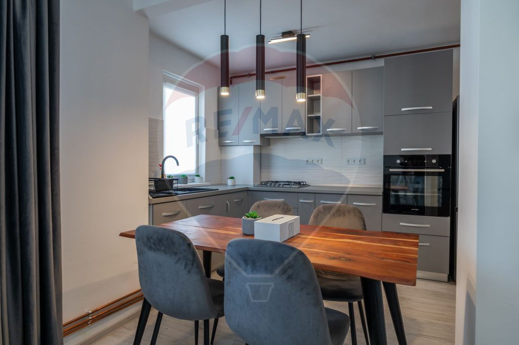 Apartament 2 camere – complet mobilat și utilat Tip proprietate: apartament cu 2 camere Compartimentare: semidecomandată Localizare: Mediaș, strada Sinaia nr. 1, etajul 3 Descriere generală: Apartamentul este complet finisat și complet mobilat, fiind pregătit pentru mutare imediată. Bucătărie: Bucătăria este complet mobilată și utilată, oferind un spațiu funcțional și bine organizat. Confort și dotări: Imobilul beneficiază de centrală termică proprie cu calorifere și geamuri termopan, asigurând confort termic și eficiență energetică pe tot parcursul anului. Avantaje: Spațiile sunt bine optimizate, cu o compartimentare practică ce permite utilizarea eficientă a fiecărei zone. Destinație: Apartamentul este potrivit atât pentru locuire proprie, cât și pentru investiție, fiind o opțiune excelentă pentru închiriere.