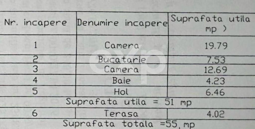 Suprafața utilă 52 m²