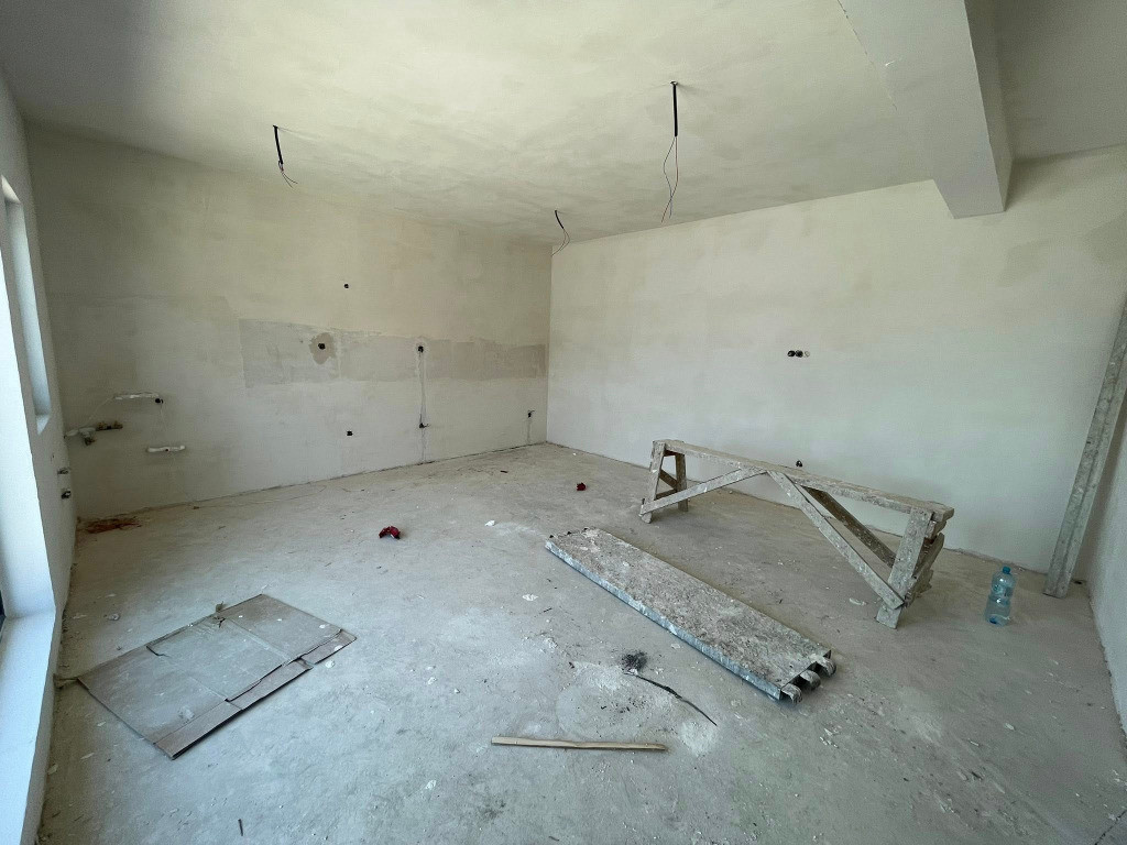 De vânzare apartament cu 2 camere cu o suprafața utilă de 52.43 mp, curte cadastrată de 60 mp, 2 locuri de parcare și POD înalt, cu placa de beton și scară retractabilă (pentru depozitare). Se predă la GATA, finisajele interioare sunt la alegerea clientului. Apartamentul dispune de încălzire prin pardoseală, centrală termică Ariston, tâmplărie Rehau cu sticlă tripan. Izolatia fonica intre apartamente este formata din caramida 25 cm grosime + tencuiala mecanizata + rigips fonic montat pe ambele parti ale zidariei (la peretii comuni intre apartamente). Apartamentul are o poziție foarte bună, în imediata apropiere regăsim stație de autobuz, magazine, restaurante, școală gimnazială, grădinița pentru copii, toate la maxim 5 minute de mers pe jos. Complexul este racordat la toate utilitatile publice ale orașului (gaze, electricitate, apa/canal, fibra optica). Preț vânzare: 77.900 + TVA Pentru mai multe detalii și vizionari vă rog să mă contactați la numărul de telefon 0770670090 Elena