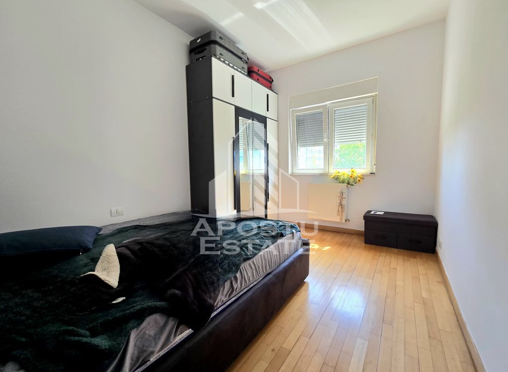 Apostu Estate ofera spre vanzare, in exclusivitate, un apartament modern cu 2 camere, decomandat, situat la etaj intermediar, etajul 3/6 al unui bloc construit in anul 2006, in zona de Nord a orasului, zona Aradului. Locuinta are o suprafata utila de 50 mp, la care se adauga un balcon spatios de aproximativ 6 mp. Apartamentul este recent renovat si se vinde complet mobilat si utilat, exact ca in fotografii. Loc de parcare subteran inclus in pret Compartimentare eficienta: - hol de acces generos - living spatios cu iesire pe balcon - bucatarie inchisa, complet mobilata si utilata - dormitor cu pat matrimonial si dressing - baie echipata cu cada si bideu Dotari si beneficii: - centrala termica proprie pe gaz - incalzire prin calorifere - aer conditionat in fiecare camera - tamplarie PVC - geamuri termopan - rulouri - electrocasnice incluse: plita pe gaz, cuptor electric, cuptor cu microunde, masina de spalat rufe, uscator de haine Pozitie excelenta: - 5 minute cu masina pana la Iulius Mall, Auchan, Hornbach, Decathlon - doar 5 minute de mers pe jos: Mega Image si Spitalul Premiere acces facil la mijloacele de transport in comun Apartamentul este ideal atat pentru locuinta proprie, cat si pentru investitie. Zona este bine cotata, cu multiple facilitati in proximitate. Te asteptam cu drag la vizionare! Oferim consultanta imobiliara si suport pentru obtinerea celui mai avantajos credit prin colaboratorii nostri financiari.