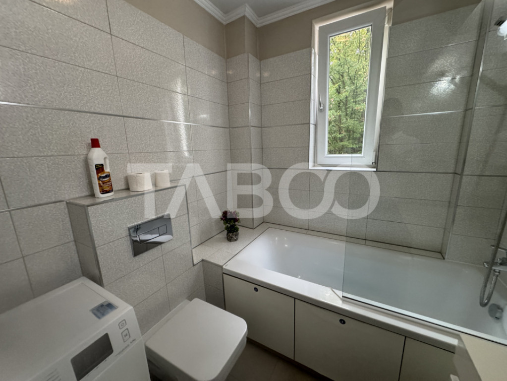 Apartament 3 camere de inchiriat, decomandat, 79 mp, zona Calea Dumbravii, Sibiu. Avantaje majore ale acestui apartament: • Intimitate, liniste, confort; • Acces privat in limita blocului, cu bariera; • Loc de parcare inclus; • Balcon cu priveliste direct catre Padurea Dumbrava; • Mobilat si utilat complet, inclusiv dormitorul care este gol in poze va fi amenajat dupa bunul plac al chiriasului; • Parter inalt, cu un alt apartament aflat sub la demisol; TABOO Imobiliare propune un apartament de inchiriat cu 3 camere, decomandat, situat in localitatea Sibiu, zona Calea Dumbravii, aflat la parter intr-un imobil tip bloc cu regim de inaltime pe Parter + 2 Etaje; anul constructiei 2013, structura caramida. Suprafata utila de 79 mp + balcon de 7 mp. Apartamentul este structurat astfel: • Hol; • Bucatarie open space cu living; • Baie cu geam; • Dormitor; • Dormitor; Finisajele interioare sunt moderne: • Usa intrare: metal; • Usi interioare: lemn; • Tamplarie ferestre: pvc, termopan; • Pereti: vopsea lavabila, faianta; • Podele: parchet, gresie. Utilitati si dotari: • Bucatarie: mobilata, utilata; • Mobilat: complet; • Utilitati: curent electric, apa, canalizare, gaz, telefon, acces internet, fibra optica; • Izolatii: exterior, bloc izolat termic; • Contorizare: apometre, contor gaz, contor curent electric; • Caracteristici bloc: videointerfon, acoperis, telecomanda poarta acces auto. Apartamentul se inchiriaza mobilat si utilat cu: plita electrica, cuptor, hota, masina de spalat rufe, masina de spalat vase, frigider cu congelator. Incalzirea se realizeaza prin centrala proprie, calorifere. Pentru a se inchiria acest apartament se achita proprietarului chiria + doua luni garantie. Pret: 850€ Cod ofertă / ID: P24728 Sună-ne acum la 0369.822.820 și află detalii despre această proprietate de inchiriat din Sibiu, dar și despre alte proprietăți potrivite pentru tine. Informatii speciale: 1. Descarcă aplicația pe mobilul tau "TABOO Imobiliare" din Apple Store, Google Play sau Huawei AppGallery pentru a afla instantaneu noile proprietăți care intră pe piață. 2. Dacă ai o proprietate pe care vrei să o vinzi sau să o închiriezi, suntem aici pentru tine! Contactează-ne pentru o evaluare gratuită fără obligații și vei descoperi avantajele de a lucra cu o echipă dedicată și experimentată. 3. Dacă vrei sa incepi o cariera de agent imobiliar, suna la 0369.822.820 si programeaza o intalnire pentru a afla toate beneficiile si avantajele. Intră pe TABOO.ro și descoperă cele mai recente oferte, actualizate zilnic. Anunt actualizat in 5 decembrie 2025. Id intern: P24728