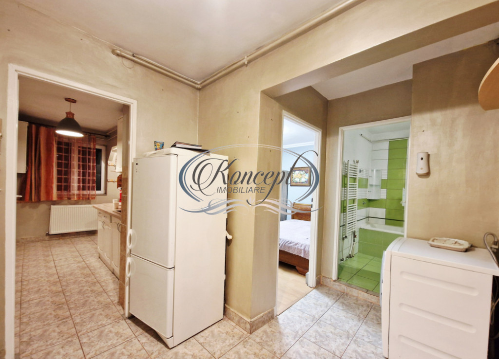 Koncept Imobiliare va ofera spre vanzare un apartament cu 2 camere decomandate, situat in cartierul Manastur, in zona Complexului Olimpia. Proprietatea este amplasata la etajul 10 din 10 al unui imobil solid, construit in anii 1980 din beton, dotat cu doua lifturi noi, aproape de mijloacele de transport in comun, scoli, magazine si servicii esentiale. Apartamentul are o suprafata utila totala de 42.44 mp, fiind eficient compartimentat in hol de intrare, bucatarie separata cu loc de servit masa, living, dormitor si baie cu dus. In plus, beneficiaza de un balcon inchis cu tamplarie PVC si geamuri termopan, in suprafata de aproximativ 3 mp, cu acces din living, precum si de o logie de aproximativ 3 mp, dotata cu incalzire in pardoseala, fiind inclusa in suprafata utila a dormitorului. Orientarea sud-vest ofera un nivel ridicat de luminozitate pe tot parcursul zilei, iar pozitionarea la ultimul etaj asigura liniste, intimitate si o priveliste deschisa asupra zonei. Apartamentul este finisat, semimobilat si utilat, avand parchet, gresie, faianta, usi de lemn si ferestre cu tamplarie PVC si geam termopan. Instalatiile electrice si sanitare au fost schimbate, iar confortul termic este asigurat de centrala termica proprie, cu incalzire in calorifere si pardoseala, completata de aparat de aer conditionat. Se vinde cu electrocasnice incluse, precum frigider, cuptor electric, plita electrica, prajitor de paine, masina de spalat haine si televizor smart. Costurile de intretinere sunt reduse, apartamentul fiind in prezent nelocuit. Prin localizare, compartimentare si dotari, aceasta proprietate este potrivita atat pentru locuire proprie, pentru un cuplu sau o persoana activa, cat si ca investitie sigura, cu potential bun de inchiriere pe termen lung. Pentru informatii suplimentare, programarea unei vizionari sau pentru a afla oferta noastra completa va stam la dispozitie telefonic, prin e-mail sau la sediul agentiei noastre, pe str. Aviator Badescu, nr. 19, Cluj-Napoca. Id intern: P21098