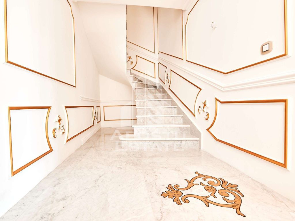 APOSTU ESTATE va propune spre vanzare un penthouse spectaculos, cu 5 camere, 4 bai si 2 terase impresionante, situat in zona de nord a Timisoarei – una dintre cele mai exclusiviste zone ale orasului. Decorul interior reflecta un stil baroc autentic, cu profile decorative Orac, pictate manual, care dau apartamentului un rafinament aparte. Suprafata utila este de 206 mp, la care se adauga terasele de 86 mp si un garaj subteran spatios de 22 mp, dotat cu poarta electrica. Compartimentare: Parter: Hol acces elegant Baie cu spatiu de spalatorie/uscatorie Birou spatios Living luminos Bucatarie moderna, cu curent trifazic de 18 kw 2 Terase superbe, perfecte pentru relaxare Etaj: Hol acces Dormitor cu baie proprie si dressing Dormitor cu baie proprie si dressing Dormitor matrimonial cu dressing si baie spectaculoasa, dotata cu jacuzzi Finisaje si dotari premium: Incalzire prin centrala proprie Viessmann, cu distributie prin calorifere Climatizare individuala in fiecare camera, cu aparate Daikin wireless Placaje integrale cu marmura de lux (Carara, Porto Nero, Dorato, Marquisa) in parter si bai Parchet din lemn exotic de mahon (22 mm) pentru o atmosfera calda si eleganta Obiecte sanitare de lux Villeroy & Boch Jacuzzi de 1.6 m diametru, imbracat in mozaic, in baia matrimoniala Prize si intrerupatoare cu comenzi axiale, cu rame din mozaic pictat manual Aceasta proprietate redefineste notiunea de confort si eleganta, fiind ideala pentru cei care apreciaza spatiul, luxul si atentia la detalii. Oferim consultanta financiara personalizata, pentru obtinerea celui mai avantajos credit imobiliar, prin partenerii nostri specializati. Pentru vizionari si detalii suplimentare, va invitam sa ne contactati. CP2728866