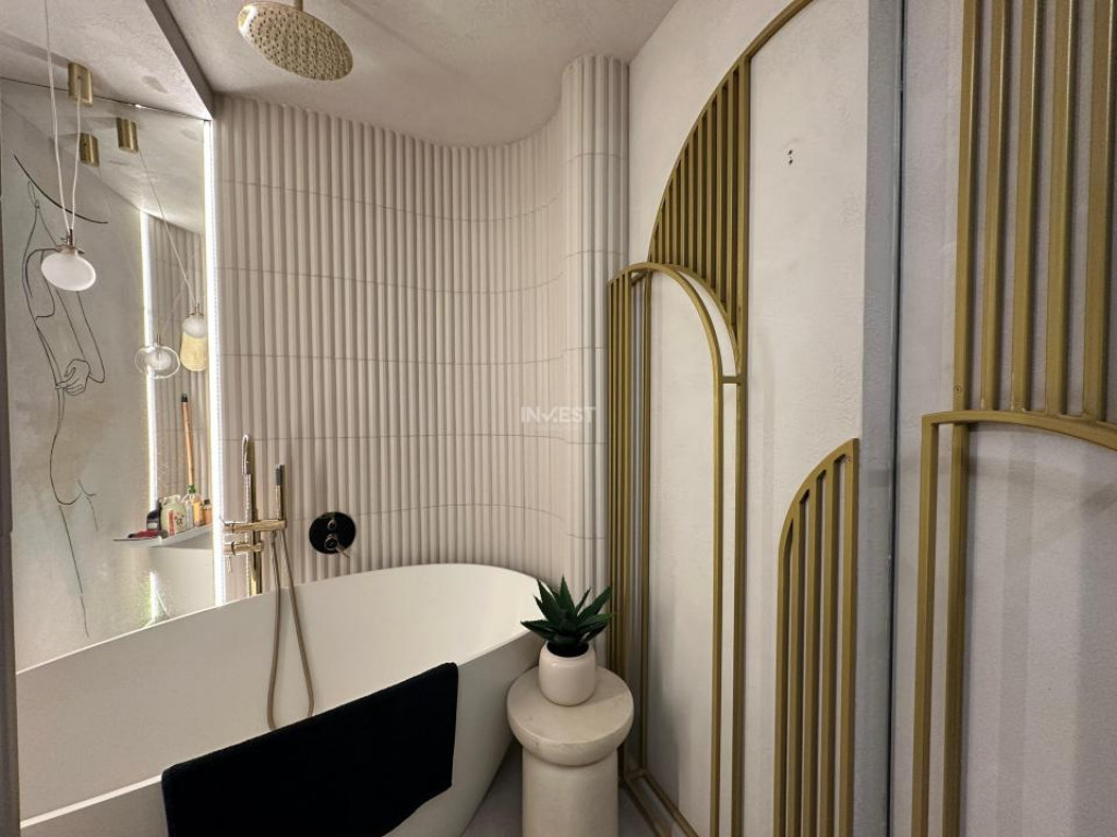 Invest Imobiliare vă prezintă în exclusivitate un apartament ce redefinește confortul modern, situat într-un ansamblu rezidențial de elită din Copou. Spațiul impresionează prin atenția acordată fiecărui detaliu, oferind un ambient rafinat, gândit pentru cei care apreciază calitatea autentică. Detalii Tehnice: - Suprafață utilă: 70 mp; - Etaj: 8 / 12; - Orientare: Est – lumină naturală abundentă pe tot parcursul dimineții; - Geamuri: suprafețe vitrate mari, cu izolație termică și fonică superioară; - Structură clădire: cadre din beton armat și compartimentări din cărămidă; - An construcție: 2022 Confort termic & ambianță: Încălzirea în pardoseală și în peretele de pe casa scării creează o senzație constantă de confort, completată de sistemul de climatizare cu două unități și de centrala termică Beretta, pentru un control termic impecabil. Termostatul de ambianță și electroconvectoarele completează un pachet tehnic orientat spre eficiență și confort absolut. Tehnologie & Funcționalitate: Bucătăria este echipată integral cu electrocasnice premium — plită Electrolux cu inducție, hotă Globalo, mașină de spălat vase — iar zona de utilități include mașină de spălat rufe și uscător. Interiorul este definit de mobilier din MDF, lumini ambientale atent integrate și un sistem audio incorporat în pereți, care adaugă o notă subtilă de lux contemporan. Facilități Suplimentare: - Două locuri de parcare subterane, cu acces privat – disponibile la 25.000 EUR - Boxă de depozitare – disponibilă la 10.000 EUR Câștigi un spațiu creat pentru cei care caută liniște, calitate și exclusivitate — o locuință luxoasa în adevăratul sens al cuvântului. Pentru mai multe detalii, nu ezitați să ne contactați la numărul: 0753482114 - Popoaia Dragos. Id intern: P8595