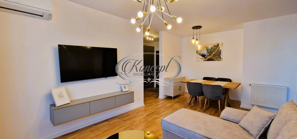 Koncept Imobiliare va ofera spre inchiriere un apartament superfinisat cu 3 camere, situat in ansamblul rezidential Park Lake, in imediata proximitate a Iulius Mall, una dintre cele mai apreciate zone rezidentiale din Cluj-Napoca, cu acces rapid catre parcuri, centre comerciale, birouri si mijloace de transport. Proprietatea este amplasata la etajul 9, beneficiind de panorama deosebita si luminozitate excelenta. Apartamentul are o suprafata utila de 70 mp, la care se adauga o terasa generoasa de 12 mp, si este compartimentat eficient in 2 dormitoare, living, bucatarie separata, 2 bai, dressing si hol. Compartimentarea avantajoasa asigura functionalitate atat pentru zona de zi, cat si pentru cea de noapte, oferind un nivel ridicat de confort. Locuinta se afla la prima inchiriere si este complet mobilata si utilata cu electrocasnice de ultima generatie, finisajele fiind realizate la standarde ridicate. Pretul include un loc de parcare subteran, un avantaj important intr-o zona intens cautata. Printre punctele forte se remarca amplasarea excelenta langa Iulius Mall si parcuri, panorama, etajul superior, calitatea finisajelor, dotarile moderne si existenta parcarii subterane. Proprietatea este recomandata ca locuinta premium, ideala pentru persoane sau familii care isi doresc confort, accesibilitate si un stil de viata modern. Apartamentul este ocupabil imediat. Pentru informatii suplimentare, programarea unei vizionari sau pentru a afla oferta noastra completa va stam la dispozitie telefonic, prin e-mail sau la sediul agentiei noastre, pe str. Aviator Badescu, nr. 19, Cluj-Napoca. Id intern: P18804