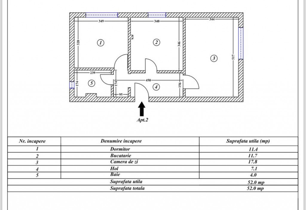 Suprafața utilă 52 m²