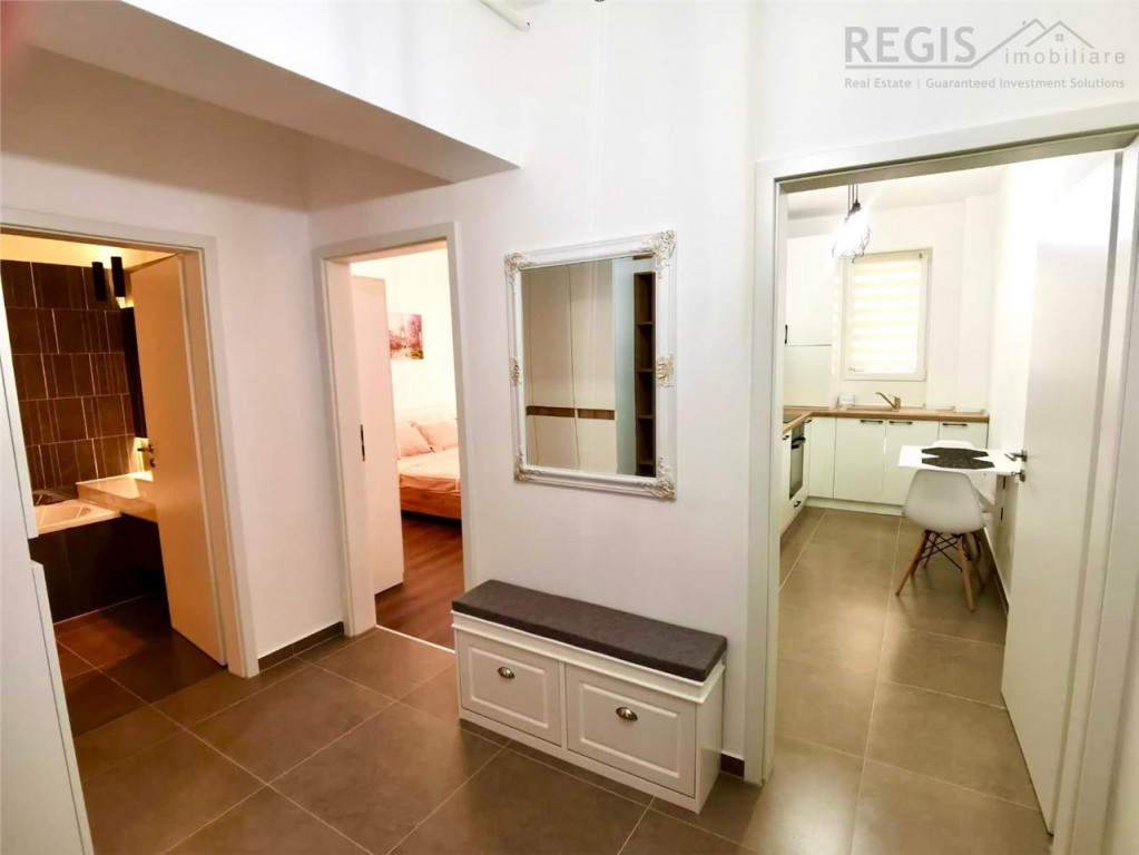 ID intern: 6564. REGIS Imobiliare va propune spre inchiriere apartament modern cu 2 camere, zona Coresi ndash; una dintre cele mai dinamice si cautate zone din Brasov. Pozitionat excelent, vis-a-vis de Mall Coresi, apartamentul ofera acces rapid la centre comerciale, restaurante, cafenele, supermarketuri, sala de fitness, statii de transport in comun si zone verzi pentru relaxare. Compartimentat decomandat, cu o structura foarte bine gandita, ideala pentru confort si intimitate. Compartimentare: - hol generos la intrare, cu spatiu pentru depozitare - living luminos, cu acces direct pe terasa - bucatarie separata, complet mobilata si utilata - dormitor spatios, cu iesire pe balcon - baie moderna - terasa balcon, ce ofera spatiu suplimentar pentru relaxare Locuinta este complet mobilata si utilata, pregatita pentru mutare imediata: - centrala proprie cu incalzire in pardoseala - cuptor electric - plita pe inductie - hota - frigider - cuptor cu microunde - masina de spalat rufe cu uscator - masina de spalat vase Finisajele sunt moderne, iar mobilierul este ales cu atentie pentru a crea un ambient elegant si functional. Este un ansamblu rezidential nou, apreciat pentru calitatea constructiei, siguranta si accesul facil catre toate punctele de interes din zona Coresi. Loc de parcare inclus in pret, cu acces securizat prin bariera. Se inchiriaza pe termen lung. Conditii inchiriere: o luna chirie o luna garantie - 670 de euro Liber de la 1 martie Comisionul agentiei este 50% TVA din prima chirie. Agent Imobiliar- Stefania