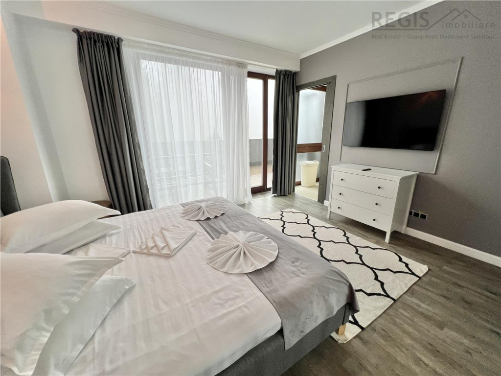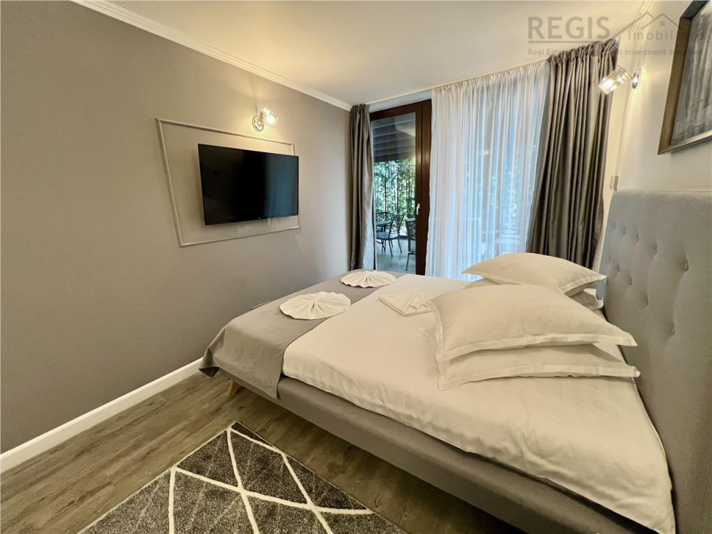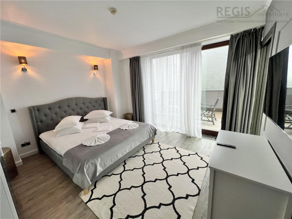 Proprietate exclusivista in mijlocul naturii la Complexul Silver Mountain, Poiana Brasov Comision agentie ZERO Apartament categoria lux, desfasurat pe 2 niveluri, cu o deschidere fantastica spre munte, cu brazii la ferestre, apartamentul are 120 mp utili plus 2 terase catre munte cu suprafa de 70 mp. Video prezentare: https://www.youtube.com/watch?v=GNLj7iCw7eY Regis Imobiliare va invita sa descoperiti o oportunitate unica de achizitie: un apartament exclusivist situat in inima naturii, in prestigiosul Complex Silver Mountain din Poiana Brasov. Indiferent ca sunteti in cautarea unei investitii cu randament atractiv, sau o casa de vacanta intr-o locatie de exceptie, acest apartament reprezinta alegerea ideala pentru a va bucura de confort si frumusetea naturii. Apartamentul este confortabil compartimentat dupa cum urmeaza- la intrare hol si baie de serviciu, living cu chicineta si loc de luat masa cu suprafete foarte generoase, dormitor matrimonial cu baie proprie dotata cu cada si cabina dus. Terasa generoasa aferenta livingului cu deschidere impecabila catre munte, strajuita de brazi, terasa din sticla, acoperita, retractabila si incalzita. locul unde cu sguranta te vei bucura sa petreci timp de calitate cu familia si prietenii. La etaj, 2 dormitoare matrimoniale cu terasa generoasa de 35 mp si deschidere catre munte. De cum vei pasi in aceasta proprietate te vor invalui confortul, luxul si linitea. Brazii vesnic verzi si semineul cu lemn natural de vor captiva intr o lume de poveste. Aparatura electrocasnica Bosch, living categoria lux cu bucatarie si loc de luat masa, 3 dornitoare matrimoniale cu bai echipate lux, 2 terase, baie de serviciu Apartamentul are mobilier de lux, modern , finisare a peretilor in culori relaxante, totul in stare excelenta. Caracteristici principale: - Tehnice: tamplarie exterioara din aluminiu podele din PVC Gerflor, placi ceramice Graniti Fiandre si obiecte sanitare Roca, usa intrare din cadru metalic, Nusco - Pinum cu incuietoare multipunct. - Localizare: Amplasat in mijlocul naturii, in Complexul Silver Mountain, acest apartament ofera liniste si relaxare, oferind in acelasi timp acces facil la facilitatile din zona. - Suprafata generoasa: Cu o suprafata utila de 120 mp, plus 70 mp terase, acest apartament de 4 camere ofera spatiu si confort pentru intreaga familie. - Design si utilitati moderne: Apartamentul este proiectat pentru a oferi confort sporit, cu living luminos si spatios, bucatarie deschisa, 3 dormitoare matrimoniale cu baie proprie,baie de serviciu - Priveliste panoramica: Bucurati-va de privelisti spectaculoase catre natura inconjuratoare. Facilitati in complex: - Recreere si sport: Complexul dispune de terenuri de tenis, badminton, minifotbal, locuri de joaca pentru copii, mese de ping-pong si multe altele, asigurand divertisment si activitati pentru toata familia. - Relaxare si wellness: Beneficiati de piscine, spa, sali de fitness, restaurant si alte facilitati de relaxare si socializare in cadrul complexului. - Siguranta si confort: Complexul ofera o gama larga de servicii si facilitati pentru confortul si siguranta locatarilor, inclusiv servicii de intretinere si paza permanenta. Loc de parcare SUBTERAN inclus in pret. Pentru mai multe informatii si pentru a programa o vizionare, va rugam sa ne contactati. Aceasta oportunitate de a deveni proprietarul unui apartament exclusivist in mijlocul naturii la Complexul Silver Mountain este una pe care nu vreti sa o ratati!
