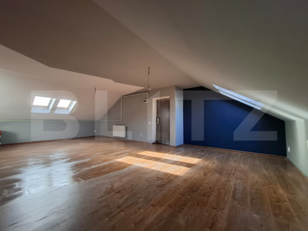 Blitz va prezinta apartament cu 2 camere in situatia actuala( care poate fi modificat in 3 camere ), situat in Floresti, pe strada Cetatii. Apartamentul este pozitionat la mansarda (etajul 3), intr-un imobil finalizat in anul 2009. Suprafata utila este de 72 mp, iar compartimentarea se prezinta astfel: bucataria open space cu livingul, dormitor (posibilitate de al 2 lea dormitor ), o baie. Apartamentul se mai poate compartimenta dupa bunul plac in acest moment. Se poate face si un balcon tip VELUX CABRIO GDL 3066 cu acces în afara mansardei cu preturi incepand de la 2000 euro. Apartamentul se preda finisat/nemobilat cu baia facuta complet. Pentru mai multe informatii va stam la dispozitie. Cod ofertă / ID BLITZ: P169603 Id intern: P169603