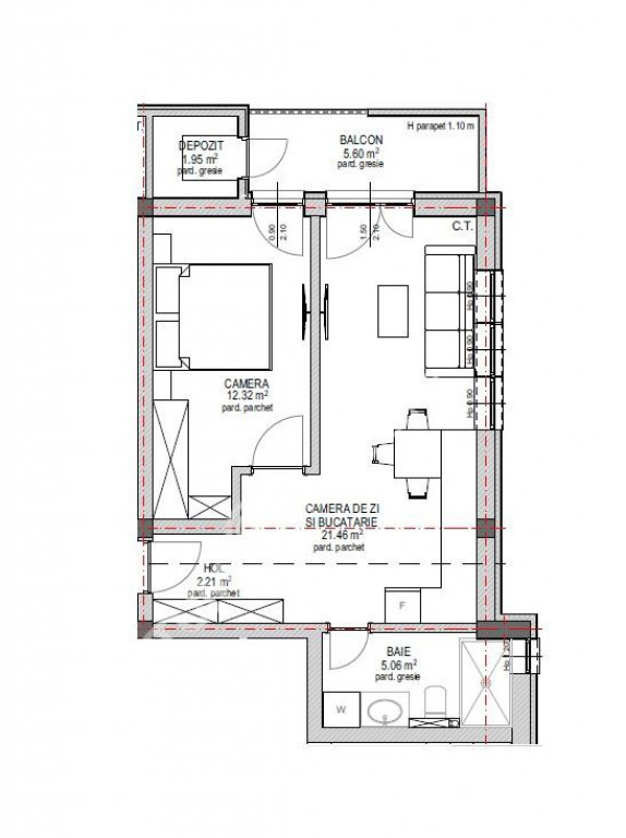 De vanzare in Sibiu zona Tiglari/Tineretului apartament cu 2 camere si balcon in suprafata totala de 59 mp, pozitionat la etajul intermediar 1. Apartamentul este situat la etajul intermediar 1 din 4 al unui imobil constructie noua care beneficiaza de 2 lifturi, parcari private destinate locatarilor si vizitatorilor si curte. Imobilul este situat la 50 m fata de complexul de agrement Lacul lui Binder pe o strada aflata in plan secundar fata de artera principala, beneficiu adus din punct de vedere al linistii, expunere la zgomot, praf si trafic redus. Locuinta in suprafata de 43.00 mp este alcatuita dintr-un living open space cu bucataria, dormitorul spatios si baia dotata cu cada si geam pentru aerisirea naturala. Separat de suprafata utila apartamentul beneficiaza si de un balcon in suprafata de 5.60 mp si o camara de 1.71 mp. Parcarea se realizeaza pe propriul loc de parcare amenajat in fata imobilului. Finisaje standard: - Usa de metal la intrarea icirc;n apartamente placate cu panou MDF; - Pereti tencuiti (tencuieli pe baza de var-ciment), gletuiti si zugraviti in lavabila alba; - tamplarie PVC cu geam termopan 5 camere si 3 foi de sticla, glafuri interior-exterior; - incalzire prin pardoseala, centrala termica proprie in condensatie si detector gaz. - sisteme elecrice din cupru trase prin copex cu tablou general si sigurante pentru consumatorii de putere marca Schneider. - Instalatii pentru curentii slabi Internet, Telefon, TV. - Racorduri apa-canal in bucatarie si bai. - Racord gaz metan la bucatarie; - Rupere termica intre balcon si placa din profil de 10 cm montat la tamplarie si polistirent extrudat. - Instalatii pentru gaz, curent electric si apa, contorizare individuala si contoare montate. Casa scarii dispune de: lift, acces securizat, scarile placate cu gresie antiderapanta, mana curenta din teava rectangulara, plafoniere cu senzori de miscare si zugraveli in lavabila alba. Spatile comune exterioare respectiv curtea complexului dispune de spatii verzi amenajate cu gazon, arbusti si plante decorative. Locurile de parcare sunt supraterane, delimitate si pavate cu dale din beton. Aleile pietonale sunt pavate cu dale din beton si delimitate de spatii verzi. Valoarea de achizitie a locuintei pentru plata avansului de 50% este de 88.950 euro, aceasta poate fi achizitionata si prin accesarea unui credit bancar. ID intern: 2746.