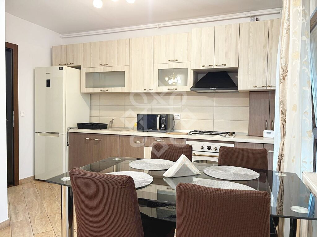 D`Art imob va ofera un apartament de inchiriat, situat intr-un bloc nou ultracentral in Oradea. Blocul din care face parte este constructie din 2015, izolat la exterior, amplasat pe strada Tudor Vladimirescu, la cateva minute de Piata Unirii si zona pietonala. Apartamentul se afla la etajul 1, masoara o suprafata de 63 mp, este decomandat, compus din living cu bucatarie si dining open space, balcon generos de 10 mp, hol, dormitor, baie cu dus. Mai dispune de 1 camara si 1 debara pentru depozitare. Finisajele sunt moderne si calitative, in culori neutre. Usile de interior sunt din lemn masiv, iar ferestrele cu geam termopan. Mobilierul este in stil clasic, facut la comanda. Locuinta se preda utilata cu: TV, aer conditionat, combina frigorifica, masina de spalat rufe, plita cu gaz, cuptor electric, hota, cuptor cu microunde, aspirator. Incalzirea este cu centrala proprie pe gaz a locuintei, ce poate fi programata in functie de temperatura dorita prin termostat ambiental. Curtea imobilului este securizata, cu acces la locul de parcare privat din aplicatia mobila. Pretul pentru acest apartament ultracentral de inchiriat este de 550 euro. ~~~~~~~~~~~~~~~~~~~~~~~~~~~~~~~~~~~~~~~~~~~~~~~~~~~~~~~~~~~~~~~~~~~~~ D`Art imob offers you an apartment for rent, located in a new ultra-central block in Oradea. The block it is part of was built in 2015, isolated on the outside, located on Tudor Vladimirescu Street, a few minutes from Piata Unirii and the pedestrian area. The apartment measures 63 sqm, is detached, composed of a living room with open space kitchen and dining room, a generous 10 sqm balcony, hallway, bedroom, bathroom with shower. It also has 1 pantry and 1 closet for storage. The finishes are modern and high-quality, in neutral colors. The interior doors are made of solid wood, and the windows have double glazing. The furniture is in a classic style, made to order. The home is delivered equipped with: TV, air conditioning, refrigerator, washing machine, gas hob, electric oven, hood, microwave oven, vacuum cleaner. Heating is provided by the home’s own gas central heating system, which can be programmed according to the desired temperature via an ambient thermostat. The building’s courtyard is secured, with access to the private parking space from the mobile application. The price for this ultra-central apartment for rent is 550 euros.