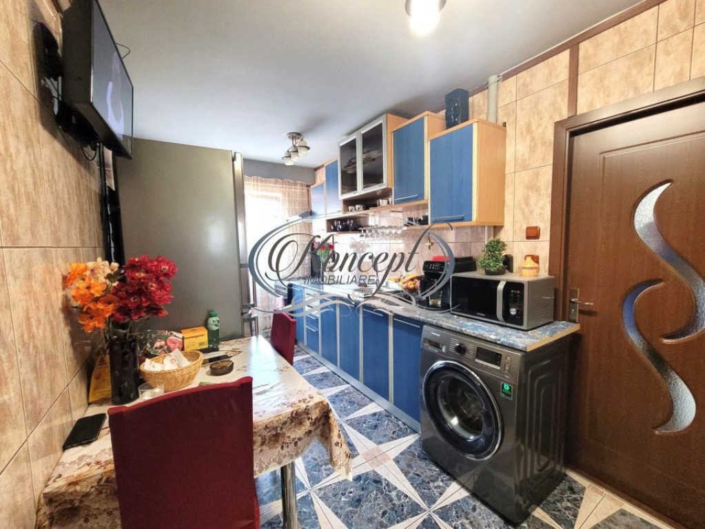 Koncept Imobiliare va ofera spre vanzare un apartament semidecomandat cu 3 camere in zona Big Manastur, amplasat la etajul 4 al unui imobil reabilitat termic cu 4 etaje. Apartamentul are suprafata de 54 mp utili, este compus din: hol, living, 2 camere, baie, bucatarie, debara si balcon cu suprafata de 4 mp, inchis cu termopan. Apartamentul este proaspat renovat, dispune de usa antiefractie la intrare, centrala termica proprie, geamuri termopan si este utilat cu: hota, aragaz, frigider, masina de spalat rufe si aer conditionat. Apartamentul se poate achizitiona atat mobilat si utilat, cat si nemobilat. Unul din avantajele apartamentului este ca dispune si de spatiul fostei uscatorii in suprafata de 12 mp. Accesul se face din bucatarie si a fost finisat si mobilat, iar din punct de vedere juridic, s-au inceput demersurile pentru a include si uscatoria in cartea funciara a apartamentului. Datorita amplasarii imobilului, zonei linistite, cu acces facil la mijloace de transport in comun si alte puncte de interes ale zonei, apartamentul se recomanda atat pentru locuinta, cat si pentru investitie. Pentru informatii suplimentare, programarea unei vizionari sau pentru a va prezenta oferta noastra completa, nu ezitati sa ne contactati telefonic, prin e-mail sau la sediul agentiei noastre de pe str. Aviator Badescu nr. 19, Cluj-Napoca. Id intern: P19972