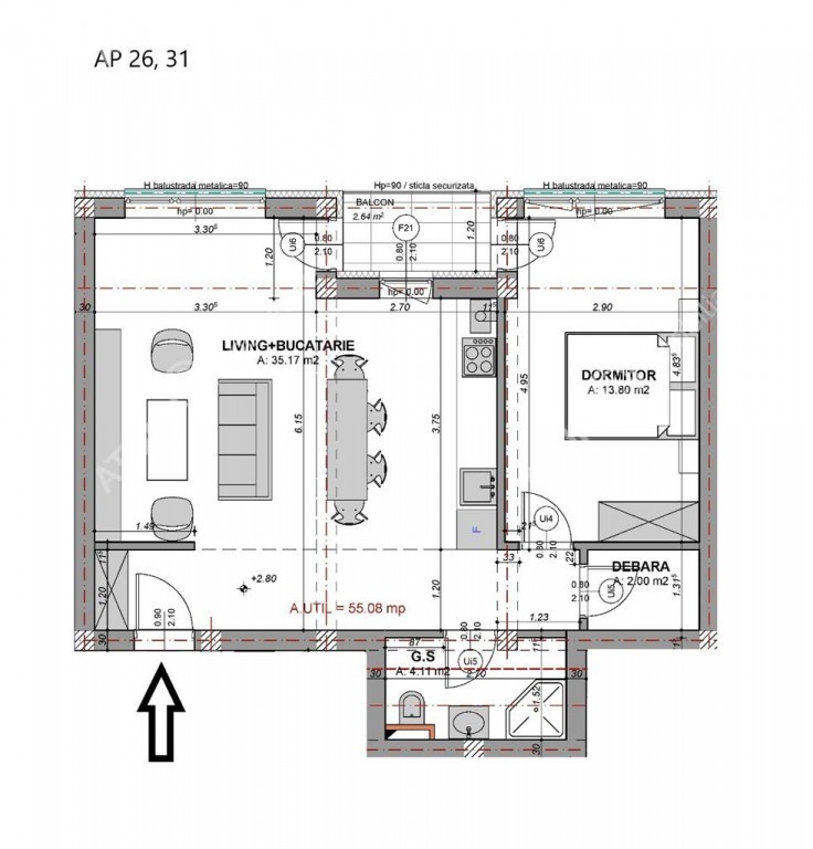 Suprafața utilă 55 m²