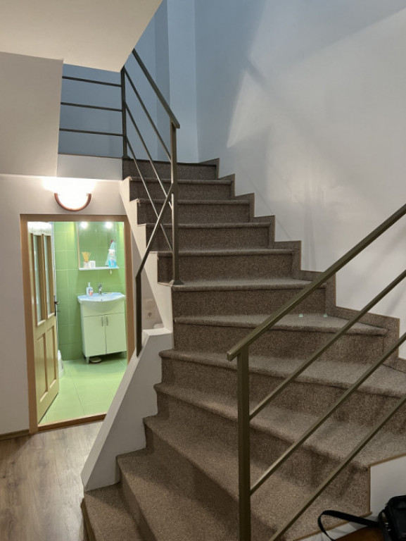 zona trei stejari, spital, gara (central) Apartamentul este intr-o casa tip duplex. Este situat in corpul de la strada in care se mai afla un apartament cu intrare separata la demisol. Apartamentul meu este compus din : bucatarie cu zona de dining (peste 20 m.p.), camera de zi, hol, baie,cu cabina de dus cu hidromasaj la parter, scara interioara, 2 dormitoare si baie la etaj. Casa a fost complet renovata in 2014 cu materiale de calitate, izolata la exterior (10 cm) si la interior (rigips), geamuri termopan, hidroizolatie la mansarda, acoperis si tamparie noua, centrala termica, gresie, faianta, parchet laminat de 8 mm,etc. Mobilier de calitate facut la comanda cu electrocasnice incorporate in bucatarie, masa si scaune din lemn masiv biblioteca moderna, TV smart LCD 101 cm, canapele extenibile, si un dormitor cu pat matrimonial. In cealalta camera pentru dormitor nu sa pus inca mobila urmand sa mobilam in functie de cerintele clientului. Suprafata totala utila a apartamentului este 101 m. p. suprafata construita 125 m.p. pret inchiriere 500 euro lunar + 1 luna garantie . comision agentie 50 % din prima chirie .pentru detalii si vizionari agent imobiliar radu tel 0751081919 Id intern: P221599