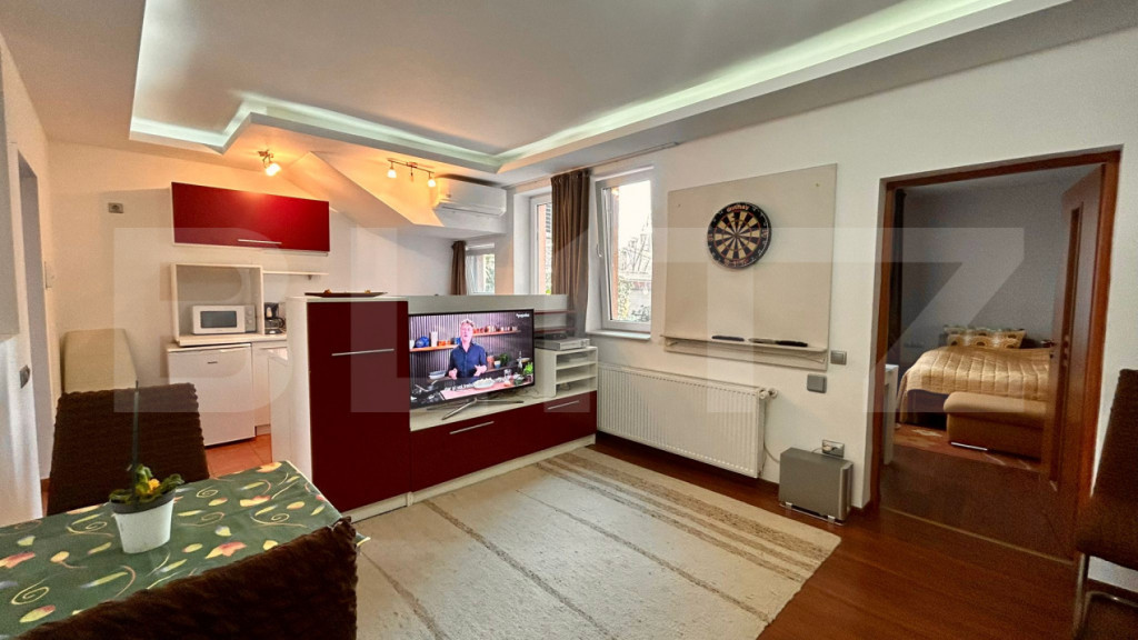 Blitz vă propune spre închiriere un apartament cu 2 camere, situat la parterul unui imobil din zona Cantemir. Proprietatea dispune de o suprafață utilă de 50 mp și beneficiază de acces la o curte comună, oferind un echilibru optim între confortul urban și liniștea unei zone rezidențiale de case. Specificații și dotări principale: Configurație: Living, dormitor, bucătărie și baie, complet mobilate și utilate . Sistem de climatizare: Dotat cu instalație de aer condiționat pentru controlul temperaturii. Sistem de curățenie: Aspirator centralizat integrat, facilitând o întreținere superioară a spațiului locativ. Încălzire: Racordat la rețeaua de termoficare a orașului. Parcare: doua locuri în fața imobilului. Localizare și avantaje: Apartamentul este poziționat strategic în cartierul Cantemir, oferind acces facil către principalele puncte de interes, centru comercial Lotus și mijloace de transport în comun, parcul Salca . Imobilul este situat la parter, asigurând un acces rapid și comod. Disponibilitate: Imediată. Cod ofertă / ID BLITZ: P166413 Id intern: P166413