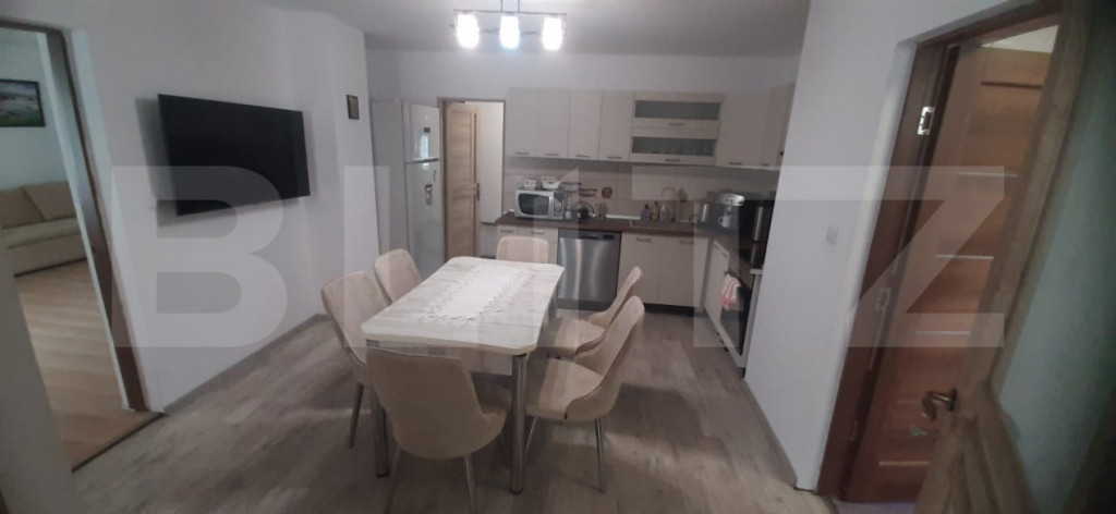 Blitz vă propune spre vânzare un apartament cu 2 camere, spațios și complet renovat, situat într-o casă cu curte comună, împărțită cu doar 3 familii. Proprietatea dispune de o suprafață generoasă de 66 mp utili, oferind un spațiu bine compartimentat și ideal pentru un stil de viață confortabil și relaxat. Locuința este formată dintr-o cameră principală luminoasă, o bucătărie generoasă, o debara practică pentru depozitare, precum și o zonă de intrare reamenajată ingenios ca o cameră de oaspeți, aducând un plus de versatilitate și funcționalitate spațiului. Apartamentul se vinde complet mobilat și utilat cu produse noi, fiind gata de locuit, fără necesitatea altor investiții. În completare, beneficiază de o terasă proprie de 12 mp, ideală pentru relaxare în aer liber, și un garaj de 18 mp, inclus în preț. Proprietatea reprezintă o alegere excelentă atât pentru locuit, cât și ca investiție imobiliară, într-o zonă bine conectată și liniștită. Cod ofertă / ID BLITZ: P145825 Id intern: P145825