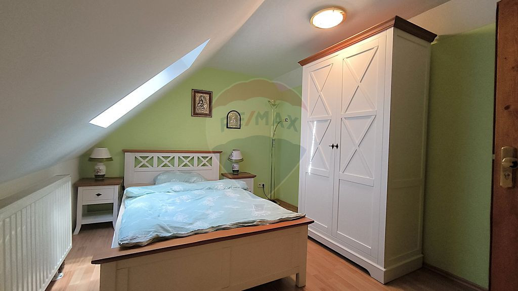 O proprietate situată într-o zonă centrală și liniștită a orașului, la doar 150 m de Școala Gimnazială „Mihai Eminescu” și la câteva minute de mers pe jos de centrul istoric al Mediașului. Poziția excelentă oferă acces rapid către școli și alte puncte de interes, fiind ideală atât pentru locuire, cât și pentru investiție. Apartamentul, cu o suprafață totală de aproximativ 80 mp, se află într-o casă solidă, bine întreținută, cu încă doi locatari pe curte, fiecare având spații delimitate și intimitate păstrată. Proprietatea este dispusă pe două niveluri: > Parterul include o cameră spațioasă și luminoasă de 24 mp, o bucătărie generoasă cu zonă de dining (17 mp), baie și două holuri care oferă o circulație fluentă între încăperi. > Mansarda, cu intrare separată din exterior, cuprinde două dormitoare, o baie și un hol, fiind ideală pentru spațiu privat, oaspeți sau închiriere independentă. Proprietatea dispune de garaj, pivniță, grădină amenajată, poartă cu automatizare și cotă parte de teren de aproximativ 133 mp. Se vinde complet mobilată și utilată, exact ca în fotografii, astfel încât noul proprietar se poate muta imediat fără alte investiții. Încălzirea și apa caldă sunt asigurate de centrală termică proprie, asigurând confort în orice sezon. Este o locuință cu personalitate, ideală pentru o familie care caută liniște, intimitate și proximitate față de centru, dar și o alegere excelentă pentru cei care doresc o investiție cu randament sigur (posibilitate de închiriere separată a nivelurilor).
