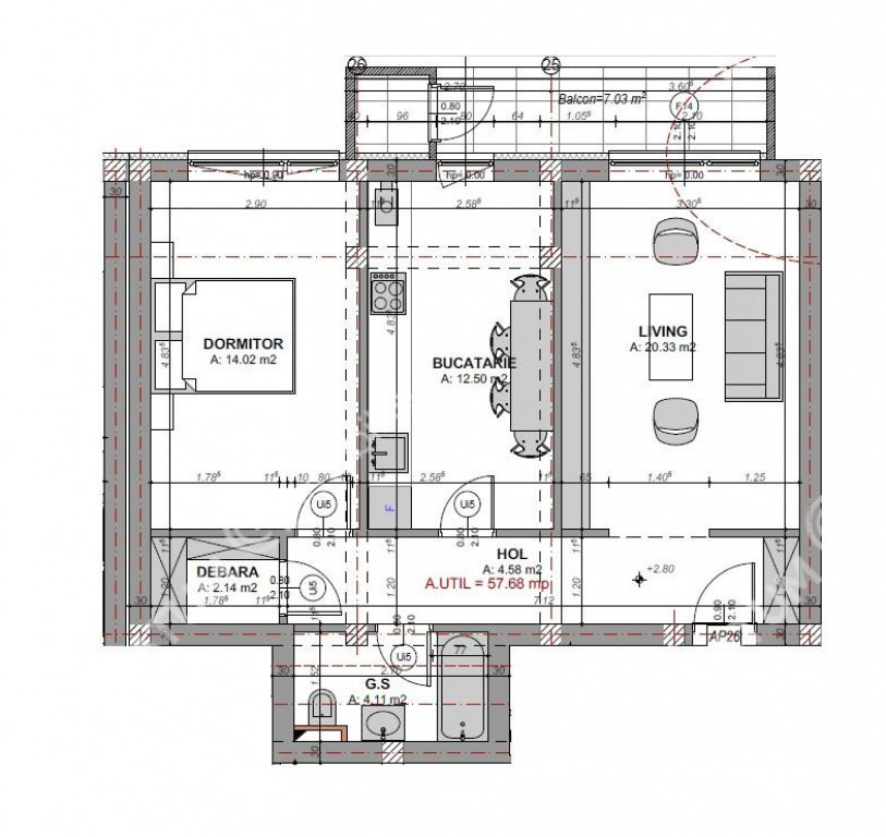 Apartament cu 2 camere decomandate, balcon si boxa de vanzare in Selimbar, in suprafata totala de 76 mp, pozitionat la etajul intermediar 2 din 3 al unui nou complex rezidential localizat pe Str. Doamna Stanca in apropierea magazinului Dedeman. Complexul de apartamente pune la dispozitia locatarilor locuri de parcare private si pentru musafiri, acces securizat in complex cu bariera si gradini apartamentelor pozitionate la parterul inalt. Din punct de vedere structural aceasta este edificat pe structura tip cadru cu stalpi si grinzi din beton armat, zidarie din caramida cu grosimea de 30 cm, anvelopare termica cu polisitren expandat de 10 cm acoperit cu vopsea decorativa de exterior, acoperis tip sarpanta. Suprafata utila a apartamentului este de 57,68, acesta fiind compus din camera de zi 20.33 mp, dormitorul de 14.02 mp, bucataria separata de 12.50 mp unde se poate pozitiona si locul de luat masa, debara de 2,14 mp care poate fi amenajata ca si dressing cu acces din dormitor, baia 4.11 mp, si un hol de 4.58 mp unde se poate pozitiona si un dressing. Separat de suprafata utila a apartamentului acesta beneficiaza si de un balcon de 7.03 mp in care accesul se face atat din camera de zi cat si din bucatarie, balcon unde se afla si o boxa pentru depozitare. Parcarea se realizeaza pe propriul loc de parcare amenajat in fata imobilului. Apartamentul se preda la stadiul de alb si dispune de urmatoarele dotari si finisaje: -Usa de metal anti-efractie la intrarea in apartament placata cu MDF; -Pereti tencuiti ( tencuiala pe baza de var-ciment ), gletuiti si zugraviti cu lavabila alba in 2 straturi; -Pardoseli amenajate cu sapa autonivelanta semiuscata elicopterizata pregatite pentru parchet-gresie; -Tamplarie PVC marca Sallamander cu 5 camere si 3 foi de sticla cu Low-E, glafuri exterioare de aluminiu si PVC interior; -Centrala proprie pe gaz marca Bosch in condensare si incalzire in pardoseala; -Distribuitor pentru instalatia de incalzire; - Racorduri apa-canal in bucatarie si bai; - Racord gaz metan la bucatarie; -Instalatii electrice trase pe pozitie cu tablou general si sigurante pentru consumatorii de putere; -Instalatii pentru TV si internet trase pe pozitie. - Balcon inchis cu parapet de caramida si sticla cu leduri, finisat si placat cu gresie antiderapanta; Valoarea de achizitie a locuintei este de 115.000 euro, aceasta poate fi achizitionata si prin accesarea unui credit bancar. ID intern: 2495.
