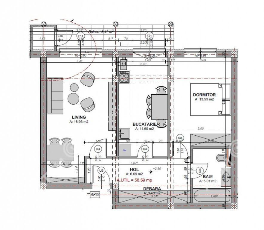 Suprafața utilă 59 m²
