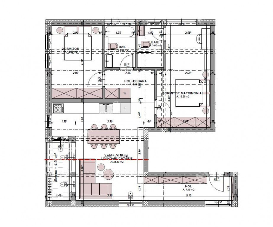 Apartament complet finisat la cheie cu 3 camere 2 bai si balcon de vanzare in zona Arhitectilor, in suprafata totala de 93.3 mp, pozitionat la etajul intermediar 1 din 2 al unui imobil modern care gazduieste doar 4 apartamente. Suprafata utila a apartamentului este de 74.10 mp, acesta fiind compus dintr-un living open space cu bucataria de 25.33 mp, dormitorul matrimonial de 15,58 mp care dispune de propria baie de 3.60 mp si dormitorul secundar 12,08 mp destinat copilului sau oaspetilor, baia de 4,70 mp dotata cu cada si 2 holuri, unul de 5,44 cu loc special amenajat pentru masina de spalat rufe si un hol de acces 7.15 mp cu loc sepcial amenajat pentru cuier si pantofar.. Separat de suprafata utila a locuintei acesta detine si un balcon 4.50 mp in care accesul se face din camera de zi. Parcarea se realizeaza pe propriul loc de parcare special amenajat si delimitat. Apartamentul se preda complet finisat la cheie cu dotari si finisaje precum: -Gresie si faianta in bucatarie, gresie si faianta in bai, obiecte sanitare ( cabina de dus/cada, lavoar, vas wc, baterii cada/lavoar ), parchet laminat, usi de interior, corpuri de iluminat, care pot fi alese chiar de dumenavoastra in limita unui buget. -Scafe realizate pentru iluminat led modern; - Usa de metal la intrarea in apartament placata cu panou MDF; - Pereti tencuiti ( tencuieli pe baza de var-ciment), slefuiti si zugraviti in 3 maini de lavabila; - Pardoseli amenajate cu sapa autonivelanta semiuscata elicopterizata pregatite pentru parchet-gresie; - Tamplarie PVC marca Salamander cu 7 camere si 3 foi de sticla ( lowe-float-lowe solar ) si 3 garnituri, glafuri interior-exterior; - Incalzire in pardoseala cu cablaj pentru termostatarea individuala a fiecarei incaperi, centrala termica proprie in condensatie marca Bosch si detector gaz; - Sisteme elecrice din cupru trase prin copex cu tablou general si sigurante pentru consumatorii de putere marca Schneider; - Instalatii pentru curentii slabi, Internet, Telefon, TV; - Racorduri apa-canal in bucatarie si bai; - Racord gaz metan in bucatarie; - Rupere termica intre balcon si placa din profil de 10 cm montat la tamplarie si polistiren extrudat; - Instalatii pentru gaz, curent electric si apa, contorizare individuala si contoare montate. Din punct de vedere structural acesta este edificat pe structura portanta din beton si zidarie din caramida cu grosimea de 30 cm peste care este aplicat termosistemul exterior din vata bazaltica de 10 cm si tencuiala decorativa siliconata de exterior, acoperis terasat Apartamentul face parte dintr-un complex rezidential modern, intim, compus din 2 imobile cu regimuri de inaltime Parter Etaj Etaj retras, totalizand 8 apartamente in tot complexul, unde apartamentul de la Parter si cel de la Etajul Retras sunt singure pe nivel iar la etajul 1 sunt doar 2 apartamente. Complexul detine si locuri de parcare private atribuite locatarilor, zona verde generoasa care inconjoara imobilul. Valoarea de achizitie este de 179.300 euro cu TVA 21% inclus, acesta se poate achzitiona si prin accesarea unui credit bancar. ID intern: 2767.