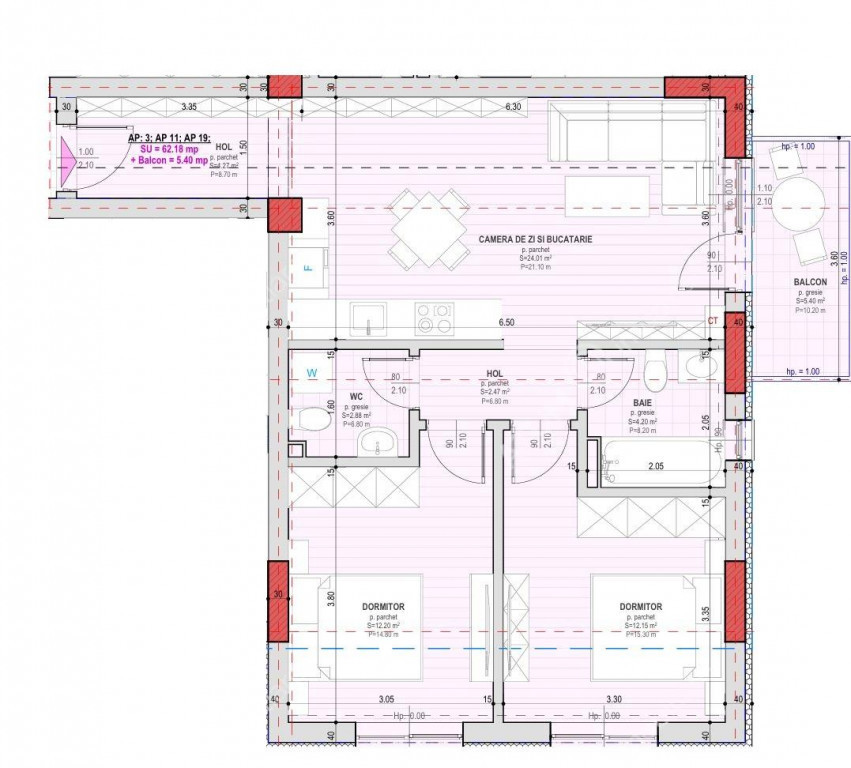 Suprafața utilă 62 m²
