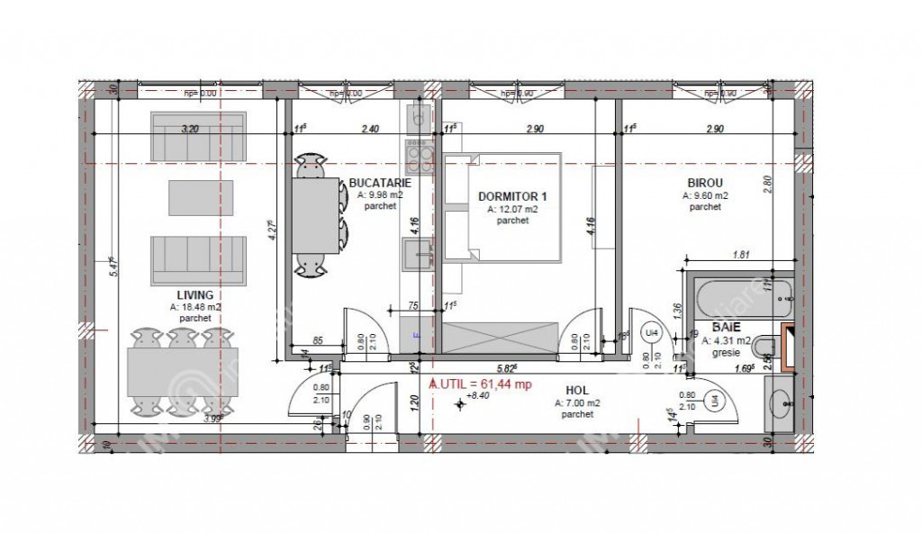 Comision 0! Va propunem spre vanzare un apartament spatios si luminos, format din 3 camere decomandate, in suprafata totala de 73 mp, pozitionat la etajul 3 al unui imobil, compus din P 3 Etaje Apartamentul are suprafata utila de 61.44 mp, avand parte de o compartimentare excelenta: holul de acces in suprafata de 7.00 mp, cu zona special amenajata pentru cuier si pantofar, livingul luminos si aerisit in suprafata de 18.48 mp, dormitorul in suprafata de 12.07 mp, bucataria inchisa in suprafata de 9.98 mp, camera destinata pentru amenajarea unui birou, camera copilului sau a oaspetilor in suprafata de 9.60 mp si baia in suprafata de 4.31 mp. Separat de suprafata utila a apartamentului, acesta detine si un balcon de aproximativ 4.00 mp. Apartamentul este intabulat si se afla la stadiul de alb, oferindu-va posibilitatea de a va alege materialele pentru amenajare in acelasi pret, in limita unui buget prestabilit, pentru o finisare completa si predata la cheie, incluzand urmatoarele: - gresie si fainta in bucatarie si bai; - obiecte sanitare ( cabina de dus/cada, lavoar, vas wc, baterii pentru lavoar si cabina dus/cada ); - parchet laminat; - usi de interior; - prize si intrerupatoare. In prezent, apartamentul dispune de urmatoarele finisaje standard: - Usa metalica de acces placata cu panou MDF; - Interfon montat pe pozitie; - Pereti interiori din caramida Porotherm, tencuiti ( tencuiala pe baza de var-ciment ), doua straturi de glet si zugraviti cu 2 straturi de lavabila alba; - Pardoseli amenajate cu sapa autonivelanta semiuscata elicopterizata pregatite pentru parchet-gresie; - Tamplarie PVC marca Salamander cu 5 camere si 3 foi de sticla cu Low-E, glafuri exterioare de aluminiu si PVC interior; - Centrala proprie pe gaz marca Immergas in condensare si incalzire in pardoseala cu cablaj pentru termostatarea individuala a fiecarei incaperi; - Instalatii electrice trase pe pozitie cu tablou general si sigurante pentru consumatorii de putere, instalatii pentru TV si internet trase pe pozitie; - Racorduri apa-canal in bucatarie si baie, racord gaz metan in bucatarie; - Contorizari individuale si contoare montate pentru gaz, curent si apa. Scara blocului este complet amenajata, avand peretii tencuiti si zugraviti, pardoseala din gresie antiderapanta, balustrada din inox, cutii postale, interfon la intrare si usa de acces din PVC cu inchidere electromagnetica. Ansamblul rezidential este privat, cu bariera, unde aleile pietonale si auto sunt amenajate, iar spatiile verzi sunt bine intretinute. Locul de joaca pentru copii este dotat cu nisip, tobogane si leagane, iar locurile de parcare sunt special amenajate, delimitate, iluminate si inscriptionate. Parcarea se face pe locul de parcare privat, situat in fata imobilului. Valoarea de achizitie al apartamentului pentru avansul de 15% este de 109.000 euro, acesta poate fi achizitionat si prin credit bancar.ID intern: 2382.