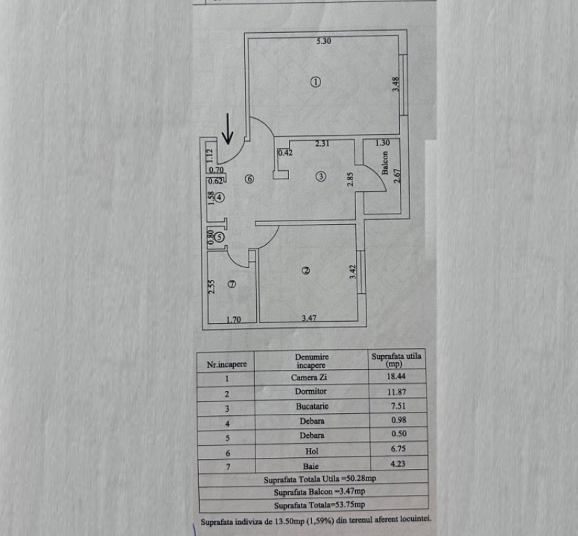 Suprafața utilă 50 m²