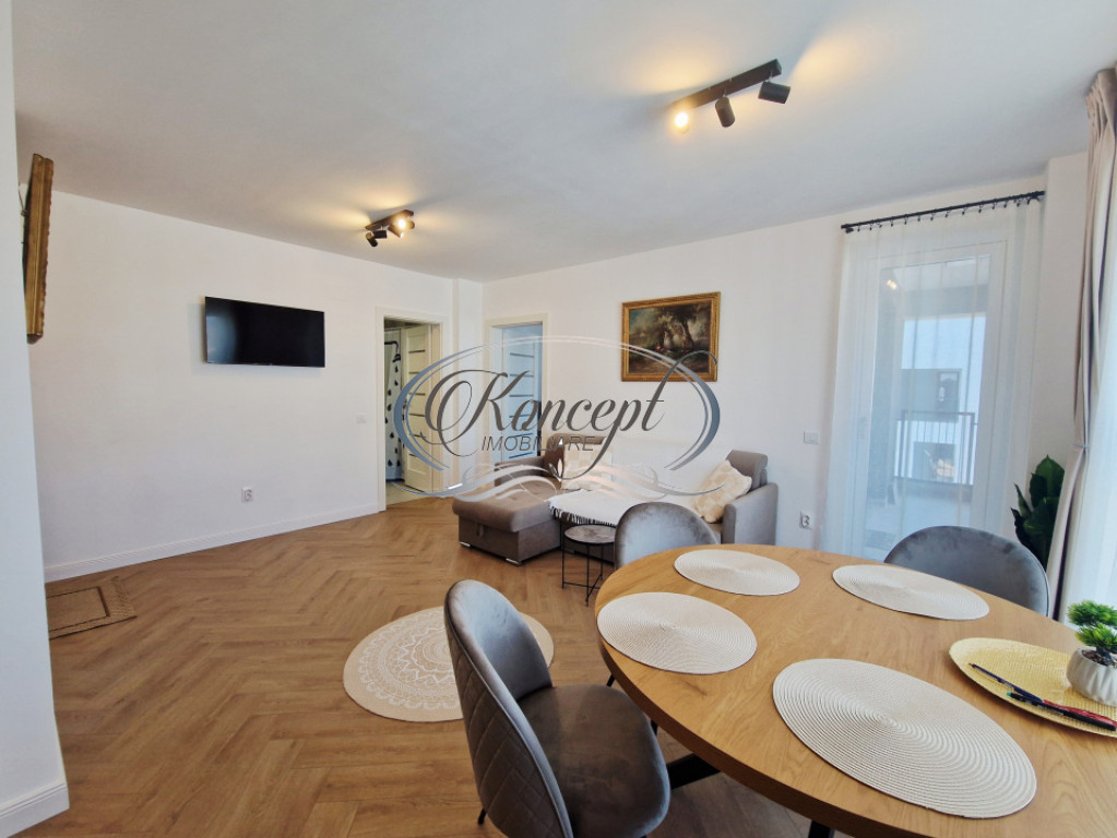 Koncept Imobiliare va ofera spre inchiriere un apartament cu 2 camere semidecomandate, situat in Floresti, in zona Vivo Polus Center, o locatie apreciata pentru accesul rapid catre centre comerciale, mijloace de transport in comun si principalele puncte de interes din zona metropolitana a Clujului. Apartamentul este amplasat la etajul 7 al unui imobil modern dispus pe 8 niveluri, construit in anul 2025 si dotat cu lift. Locuinta are o suprafata utila de 52 mp, la care se adauga un balcon deschis de 3 mp, accesibil atat din living, cat si din dormitor. Orientarea nord-vestica asigura un ambient placut si luminos in a doua parte a zilei. Compartimentarea este moderna si eficienta, cu zona de living si bucatarie open-space, dormitor separat, baie cu ventilatie si balcon. Apartamentul a fost renovat in 2026 si se afla la prima inchiriere dupa renovare, oferind un spatiu proaspat amenajat, pregatit pentru noii chiriasi. Proprietatea dispune de centrala termica proprie cu incalzire prin pardoseala, tamplarie PVC cu geam termopan si usa metalica antiefractie la intrare, elemente care contribuie la confortul si siguranta locuintei. Apartamentul se inchiriaza complet mobilat si utilat cu electrocasnice noi, inclusiv hota, cuptor electric, aragaz, masina de spalat vase, frigider, cafetiera, masina de spalat haine si televizor smart. Un avantaj important al proprietatii este locul de parcare exterior inclus in pret, precum si proximitatea fata de Vivo Polus Center, magazine, restaurante si statii de transport in comun, ceea ce faciliteaza deplasarea rapida catre oras. Prin finisajele moderne, electrocasnicele noi, prima inchiriere dupa renovare si amplasarea in zona Vivo din Floresti, aceasta proprietate reprezinta o alegere potrivita pentru cupluri, studenti sau persoane active care isi doresc o locuinta confortabila si bine conectata la facilitatile urbane. Pentru informatii suplimentare, programarea unei vizionari sau pentru a afla oferta noastra completa va stam la dispozitie telefonic, prin e-mail sau la sediul agentiei noastre, pe str. Aviator Badescu, nr. 19, Cluj-Napoca. Id intern: P21245