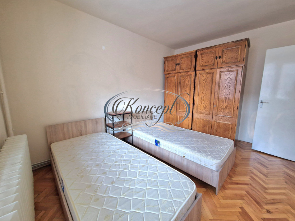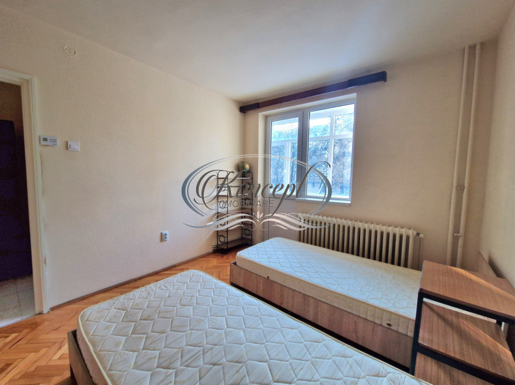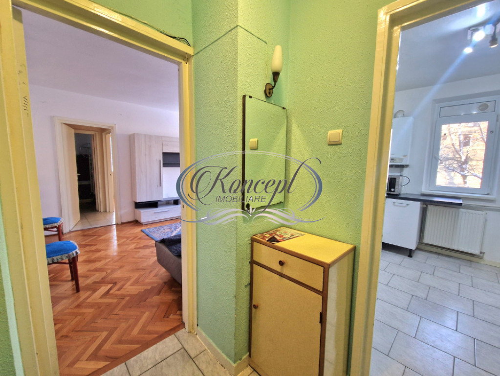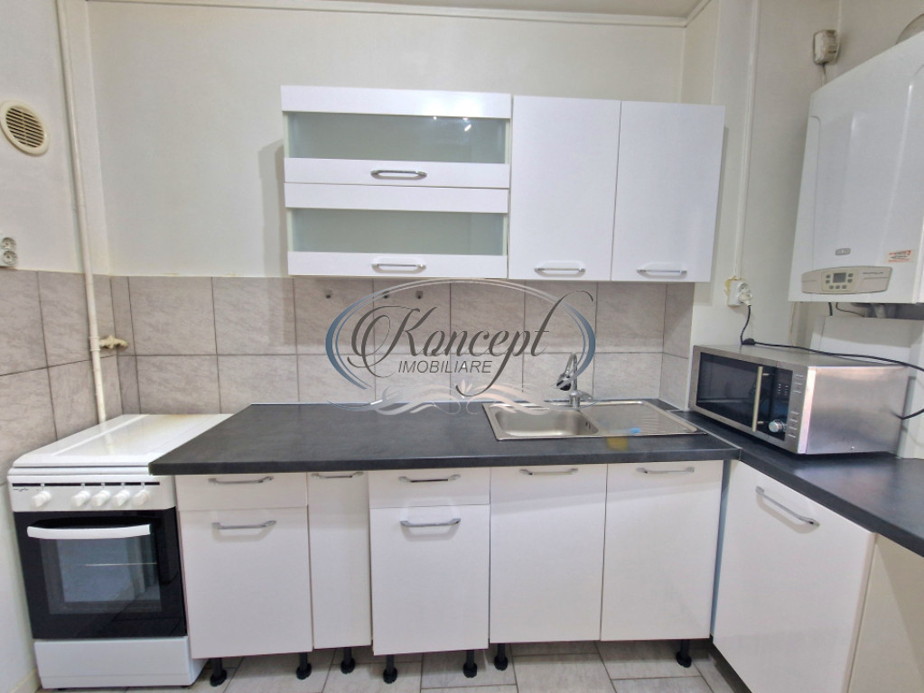 Koncept Imobiliare va ofera spre inchiriere un apartament situat in cartierul Gheorgheni, in zona Hotelului Royal, intr-o locatie apreciata pentru accesibilitate si liniste, la doar 2 minute de statii de autobuz si magazine, in imediata apropiere de scoli, Piata Hermes si Iulius Mall. Apartamentul este amplasat la etajul 2 al unui imobil cu regim de inaltime P+4, recent reabilitat termic, intr-o zona cu spatii verzi si trafic redus, cu orientare sudica ce asigura luminozitate naturala pe tot parcursul zilei. Locuinta are o suprafata utila de 44 mp si este compartimentata eficient, oferind un hol de intrare, bucatarie inchisa cu debara pentru depozitare, o camera de trecere ce poate fi folosita ca zona de living sau spatiu de relaxare, un dormitor separat, un al doilea hol cu spatii de depozitare, baie cu cada si geam pentru ventilatie naturala, precum si o logie inchisa cu termopan, cu suprafata de 4 mp. Apartamentul beneficiaza de finisaje clasice si se inchiriaza complet mobilat si utilat, fiind dotat cu frigider, aragaz, cuptor cu microunde si masina de spalat rufe. Incalzirea se realizeaza prin centrala termica proprie si calorifere, ceea ce permite un control eficient al costurilor de intretinere. Exista posibilitate de parcare in zona. Pozitionarea in cartierul Gheorgheni, proximitatea fata de puncte de interes major, orientarea sudica, compartimentarea practica si blocul reabilitat termic sunt elemente care diferentiaza aceasta proprietate si o fac potrivita pentru un cuplu sau studenti care isi doresc acces rapid catre centre comerciale, universitati si zone de interes urban, intr-un cadru echilibrat si linistit. Pentru informatii suplimentare, programarea unei vizionari sau pentru a afla oferta noastra completa va stam la dispozitie telefonic, prin e-mail sau la sediul agentiei noastre, pe str. Aviator Badescu, nr. 19, Cluj-Napoca. Id intern: P21096
