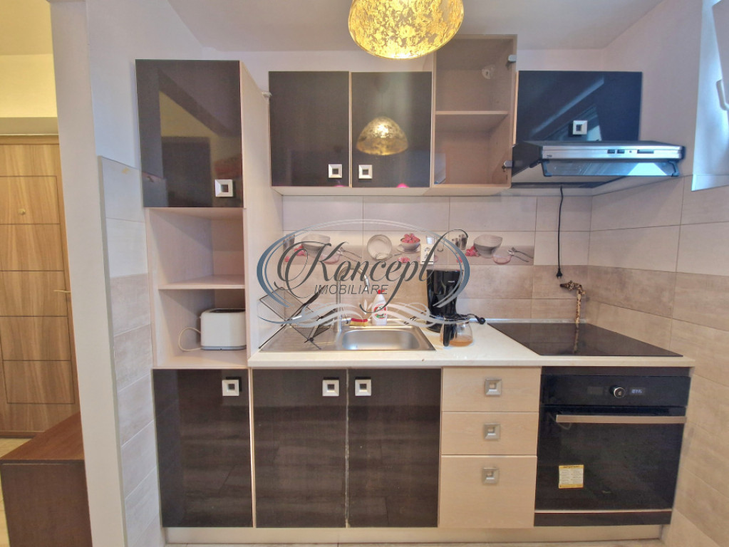 Koncept Imobiliare va ofera spre inchiriere un apartament situat in cartierul Gheorgheni, pe strada Constantin Brancusi, intr-o zona apreciata pentru accesibilitate si atmosfera linistita, cu proximitate fata de statii de transport in comun, magazine, banci, farmacii si zone verzi. Proprietatea este amplasata la etajul 4 al unui imobil cu 4 niveluri, beneficiind de orientare nord-vestica, ceea ce asigura un ambient placut si luminos pe parcursul zilei. Apartamentul dispune de o suprafata utila de 37 mp si este compartimentat eficient in hol de intrare, bucatarie separata, living de trecere, hol secundar, dormitor si baie cu geam pentru ventilatie naturala. Se inchiriaza complet mobilat si utilat, fiind pregatit pentru mutare imediata. Dotarile includ masina de spalat rufe, frigider, plita electrica, cuptor electric, cafetiera, fierbator de apa, televizor si aer conditionat, toate integrate pentru un confort optim. Finisajele moderne contribuie la un aspect placut si functional, iar compartimentarea inteligenta permite o delimitare clara a zonelor de zi si de odihna. Printre avantajele principale se numara costurile reduse la utilitati, zona linistita, luminozitatea naturala si accesul rapid catre puncte de interes din oras. De asemenea, apartamentul reprezinta o alegere practica pentru cei care cauta eficienta si confort intr-un spatiu bine organizat. Recomandam aceasta proprietate atat pentru o persoana singura, cat si pentru un cuplu care isi doreste o locuinta intr-o zona bine cotata, cu acces facil si cheltuieli optimizate. Pentru informatii suplimentare, programarea unei vizionari sau pentru a afla oferta noastra completa va stam la dispozitie telefonic, prin e-mail sau la sediul agentiei noastre, pe str. Aviator Badescu, nr. 19, Cluj-Napoca. Id intern: P21310